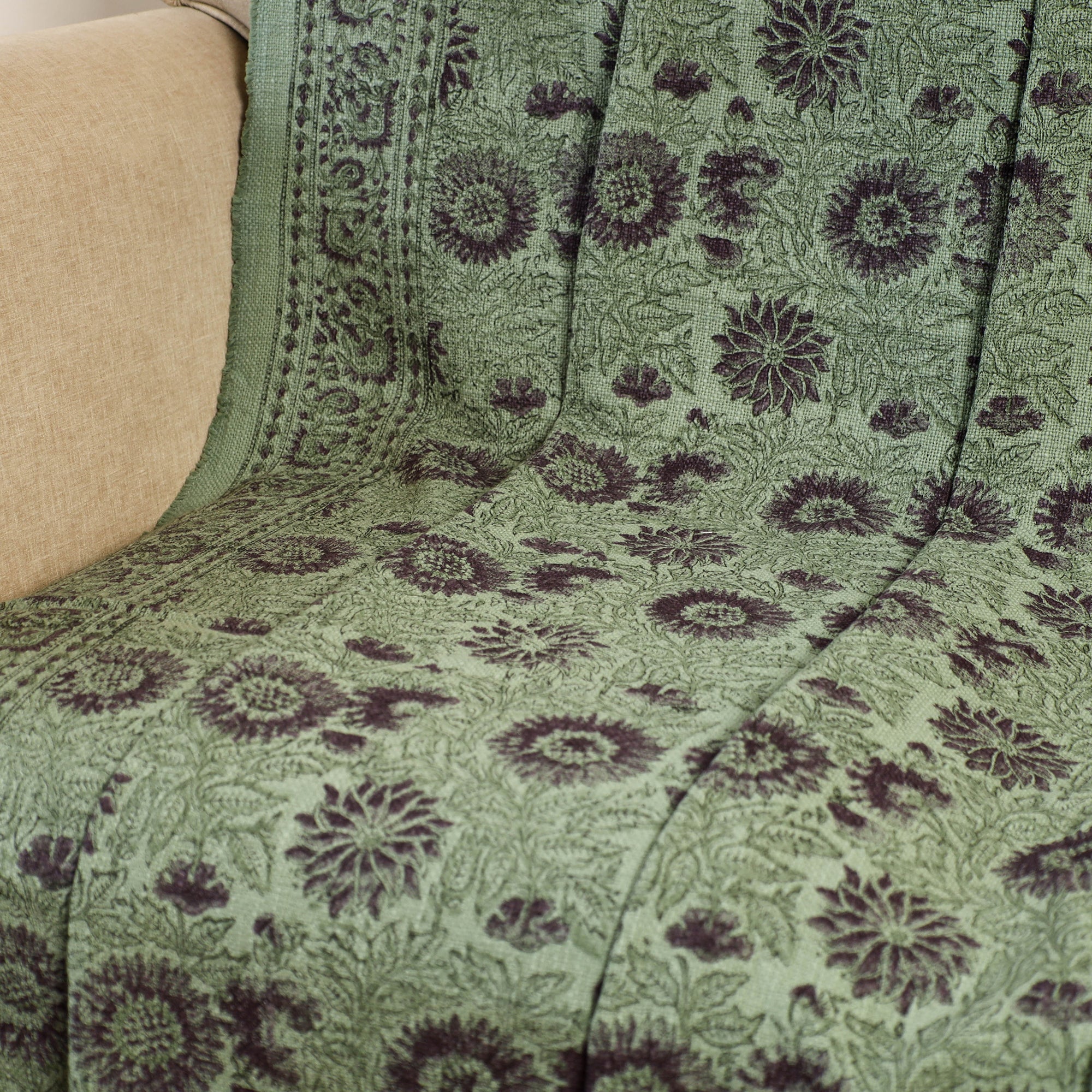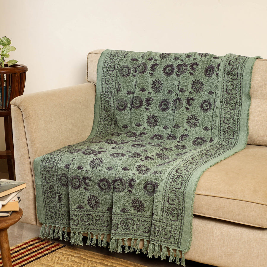 Infuse your space with this heritage green jaipur cotton sofa throw, block printed by skilled artisans using traditional methods. Each piece features simple yet striking patterns that elevate your home. It’s perfect for sofas, beds, or cozy reading nooks. Whether you're styling your space or seeking comfort, this throw beautifully blends warmth with a touch of Indian heritage.