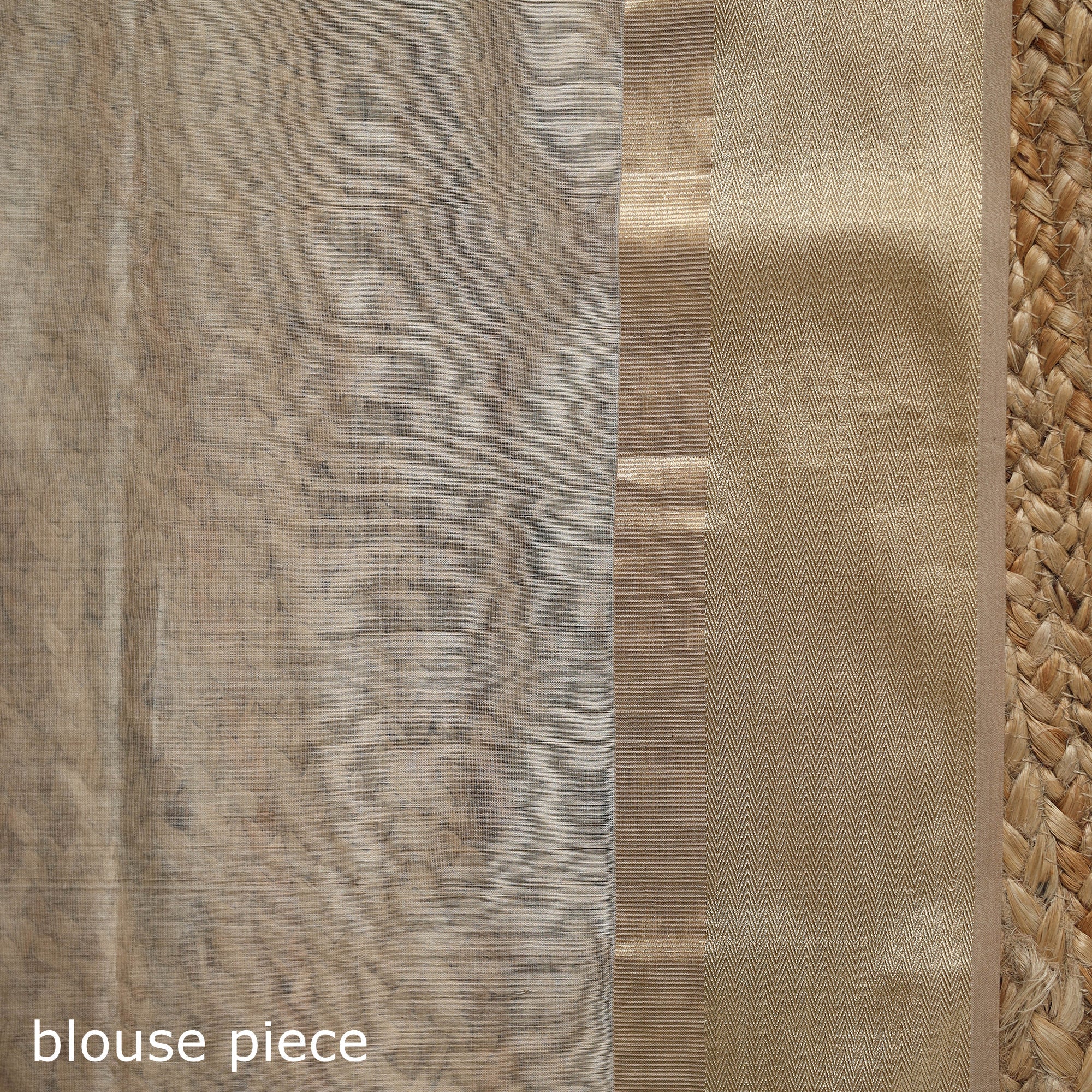 Beige tissue zari weave maheshwari handloom saree with ghicha pallu and resham border is woven by artisans in Maheshwar, Madhya Pradesh, using traditional weaving techniques. It uses organza silk 2/130 denial in the warp and mercerised cotton 2/120 or mulberry silk twist thread in the weft, which gives the saree a comfortable feel and a light sheen. suitable for both everyday wear and celebrations.
