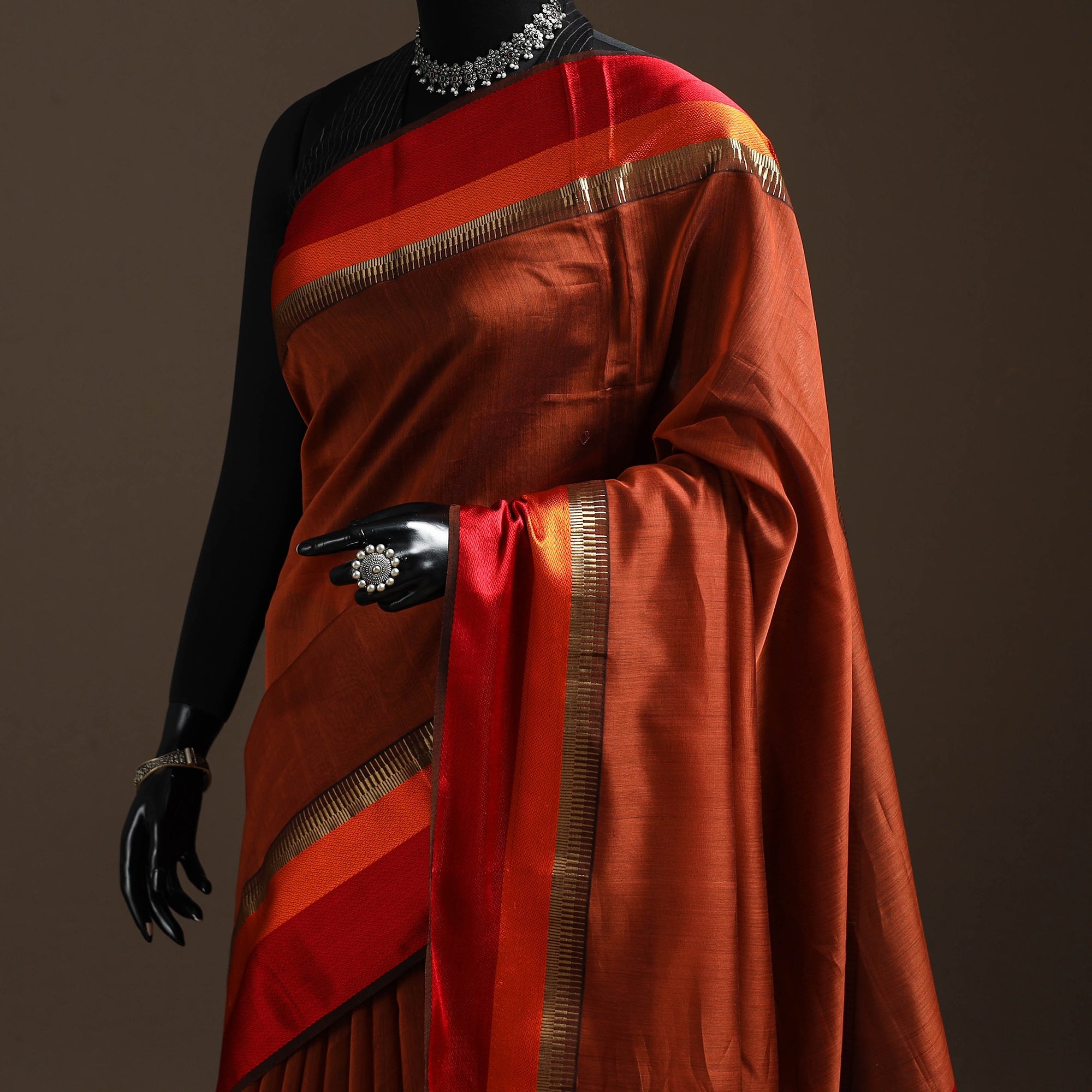 Brown - Handloom Buti Maheshwari Saree with Zari Border 43