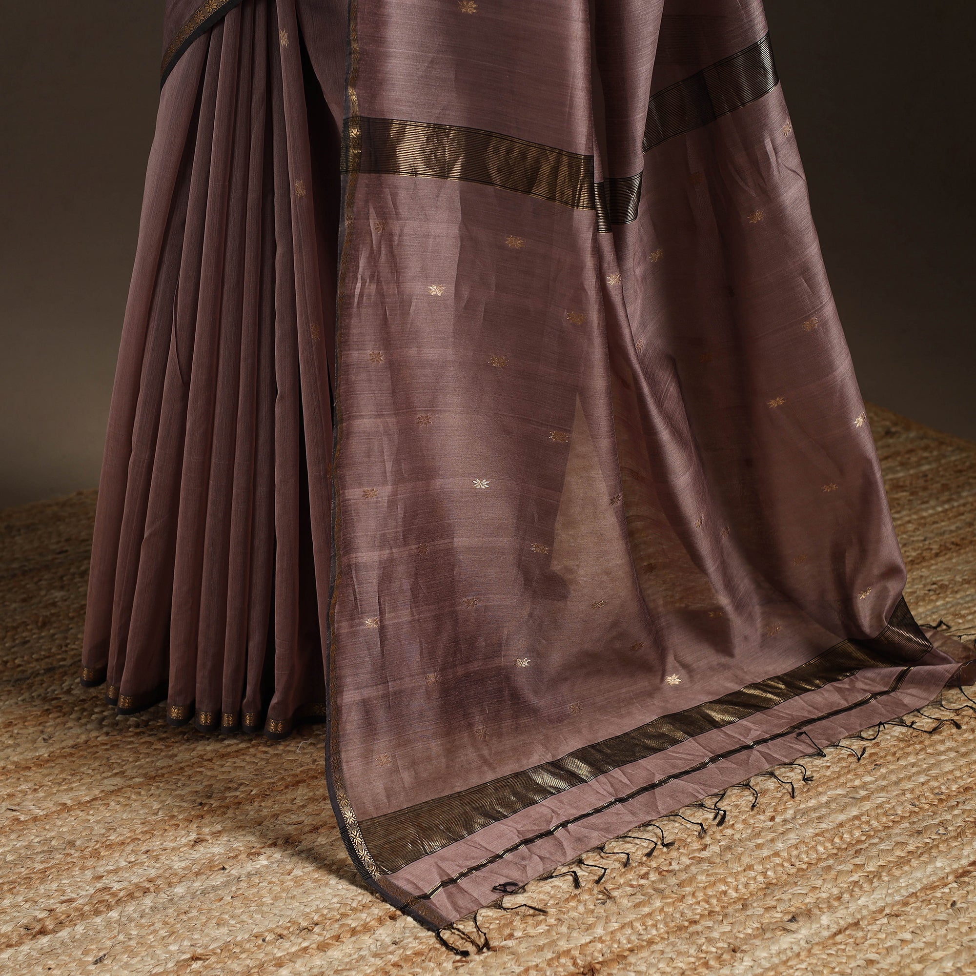 Purple - Handloom Maheshwari Saree with Zari Border 34