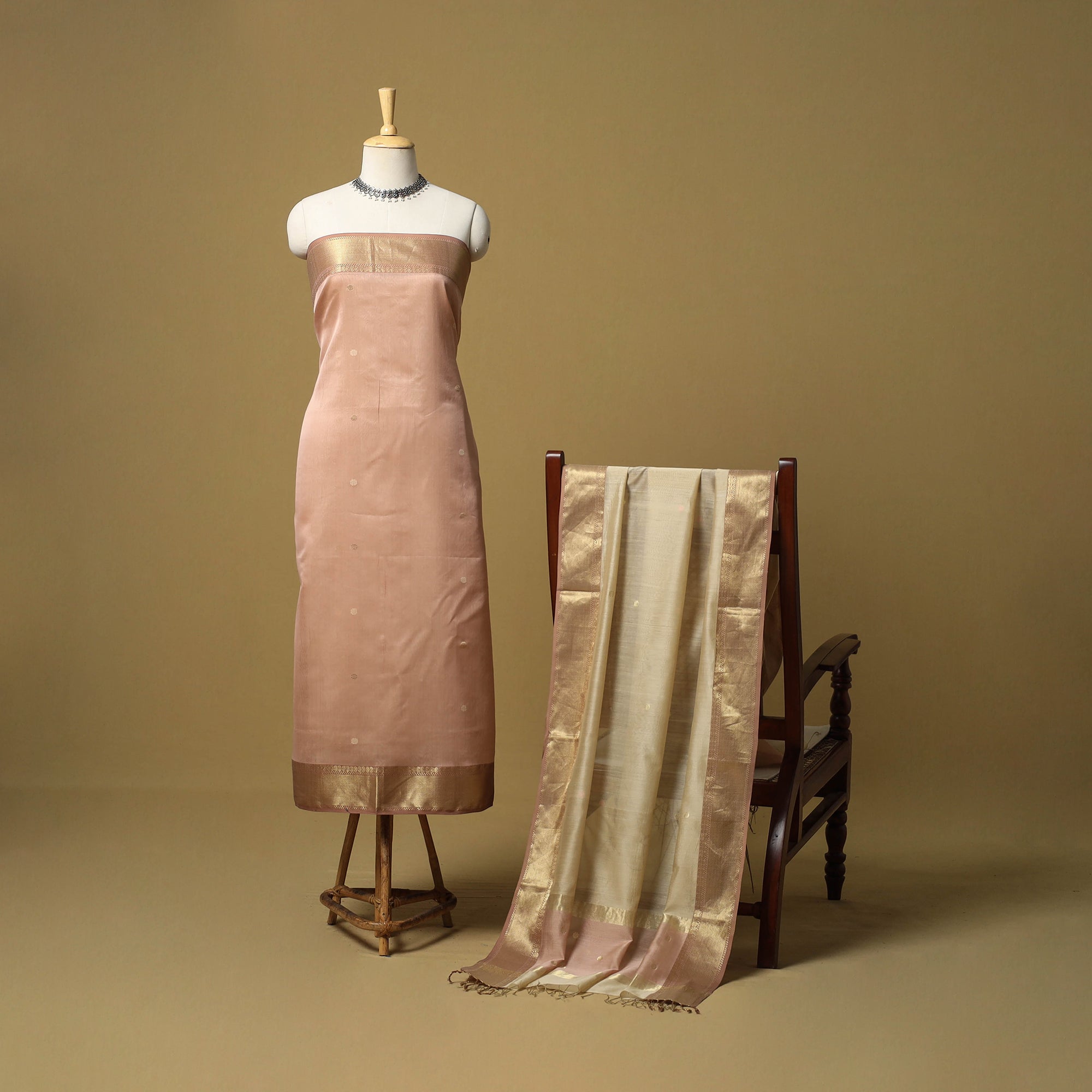 • Handloom maheshwari silk buti work 2pc unstitched dress