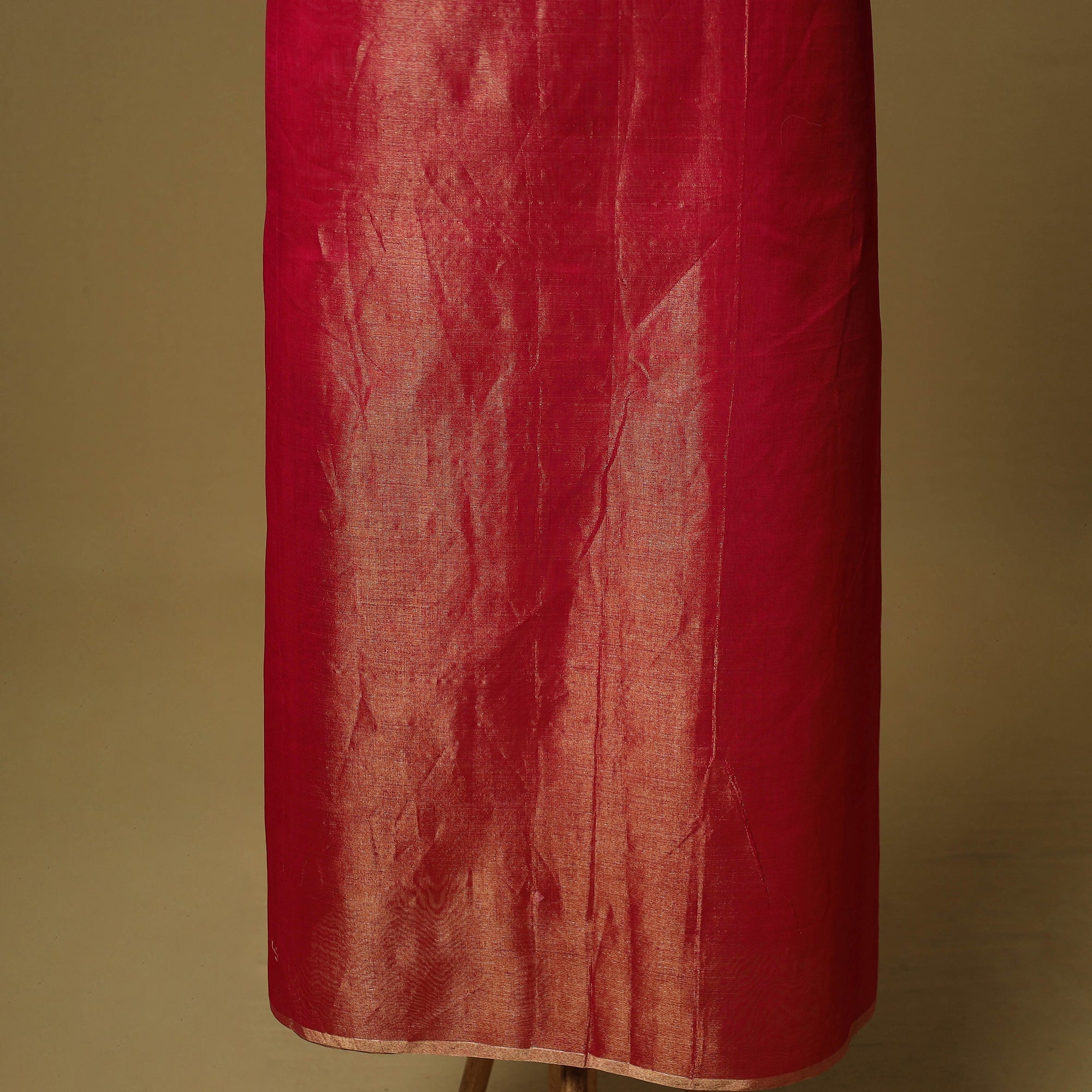 Pink handloom maheshwari silk cotton tissue zari unstitched 2pc dress material from Madhya Pradesh showcases the intricate detailing of Maheshwari weaving. The set includes kurta fabric and a dupatta finished with tassels. The tissue zari known for its subtle sheen and fine woven texture, enhances the fabric’s appearance while the zari border adds a refined touch to the design. The fabric is light easy to drape and suitable for festive wear, small celebrations or everyday elegant styling.