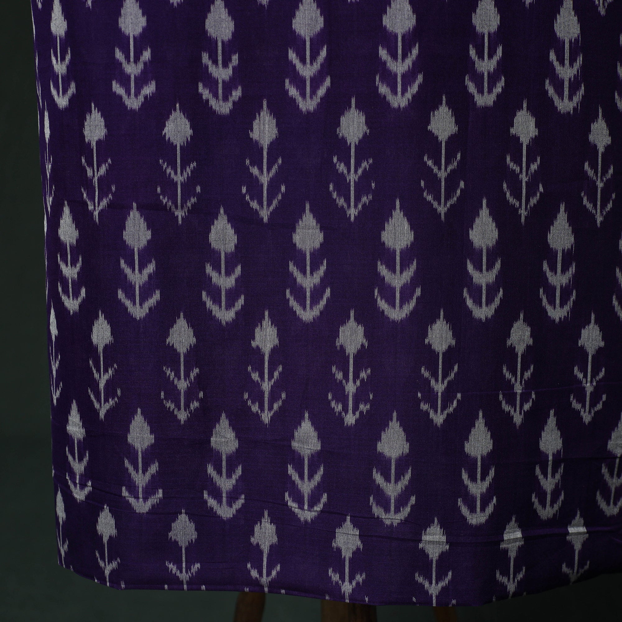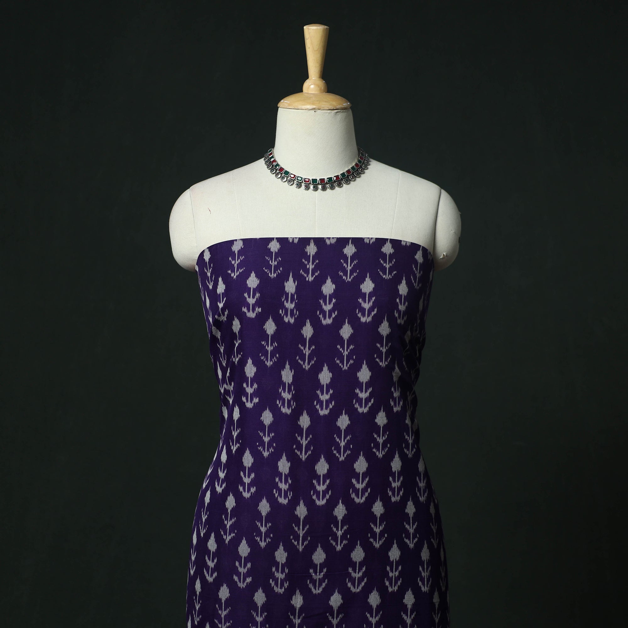 Handloom pochampally ikat mercerised cotton 2pc unstitched dress material is woven by skilled weavers from Telangana using a resist-dye technique that is thousands of years old. Each thread is dyed before weaving to create the signature intricate Ikat patterns, the set includes kurta fabric with a matching dupatta, offering a graceful drape and making it ideal for tailoring elegant ethnic wear.