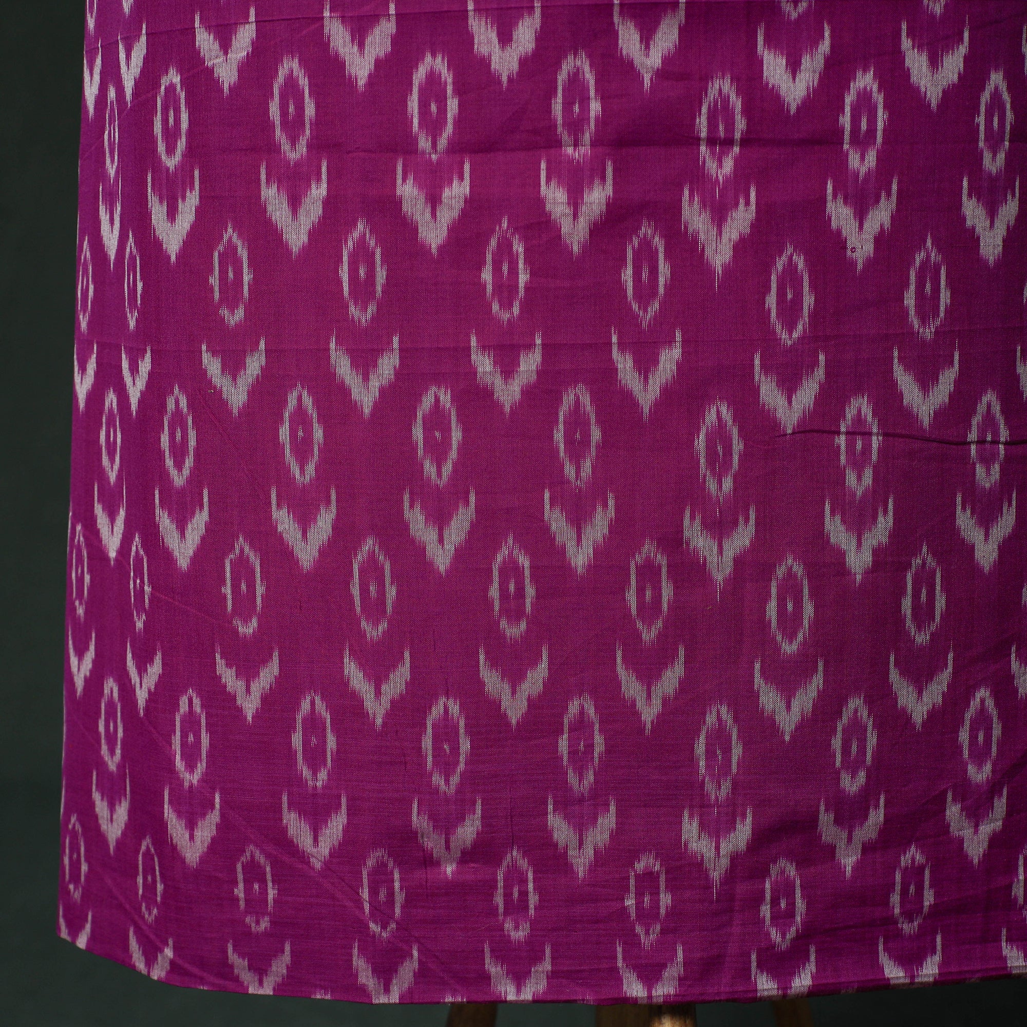 Handloom pochampally ikat mercerised cotton 2pc unstitched dress material is woven by skilled weavers from Telangana using a resist-dye technique that is thousands of years old. Each thread is dyed before weaving to create the signature intricate Ikat patterns, the set includes kurta fabric with a matching dupatta, offering a graceful drape and making it ideal for tailoring elegant ethnic wear.