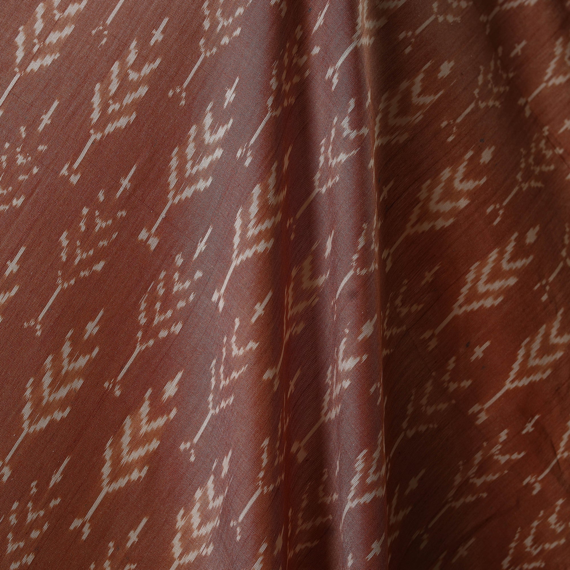 Brown handloom mercerised cotton pochampally ikat fabric from Telangana features vibrant geometric patterns created through a resist-dyeing technique where threads are dyed before weaving. Known for its smooth texture and refined finish, this durable fabric is perfect for clothing and decor, adding a touch of traditional elegance and artisanal charm to every creation.