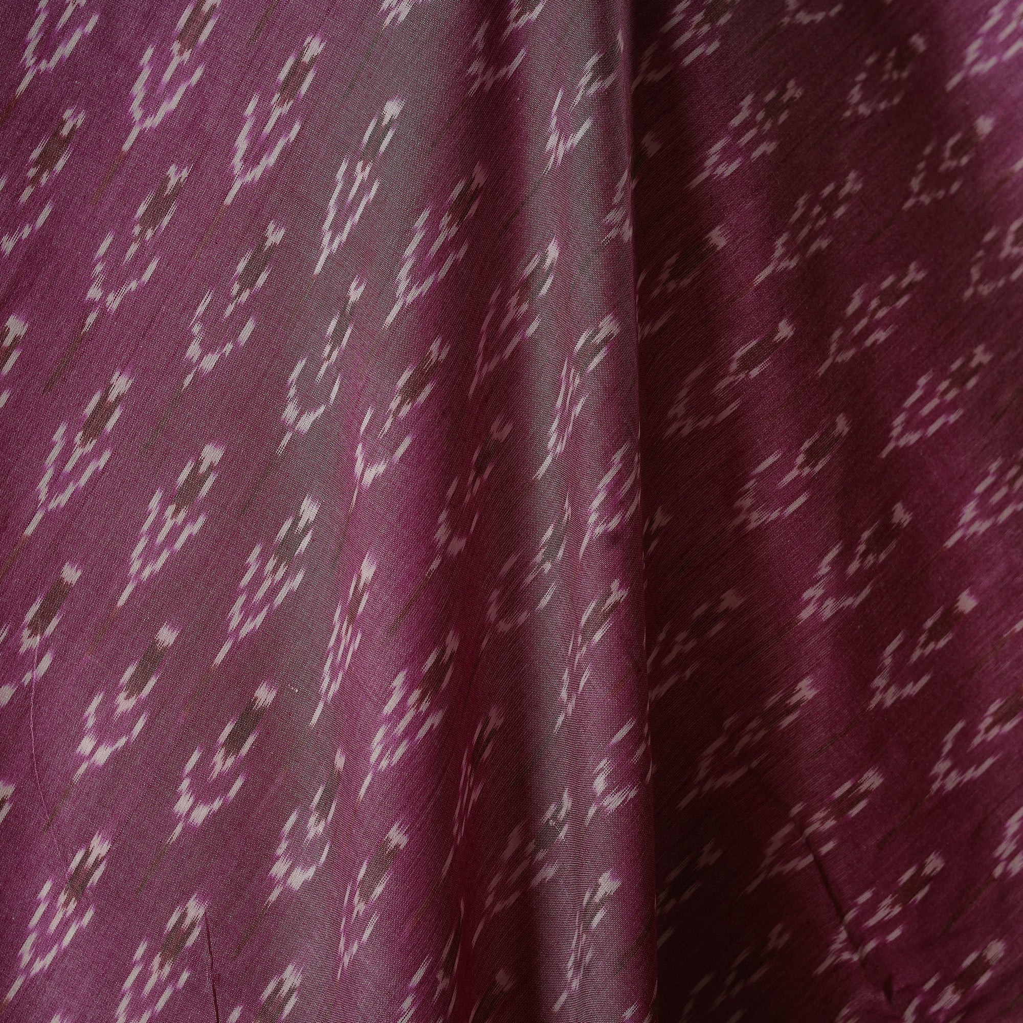 Pink handloom mercerised cotton pochampally ikat fabric from Telangana features vibrant geometric patterns created through a resist-dyeing technique where threads are dyed before weaving. Known for its smooth texture and refined finish, this durable fabric is perfect for clothing and decor, adding a touch of traditional elegance and artisanal charm to every creation.
