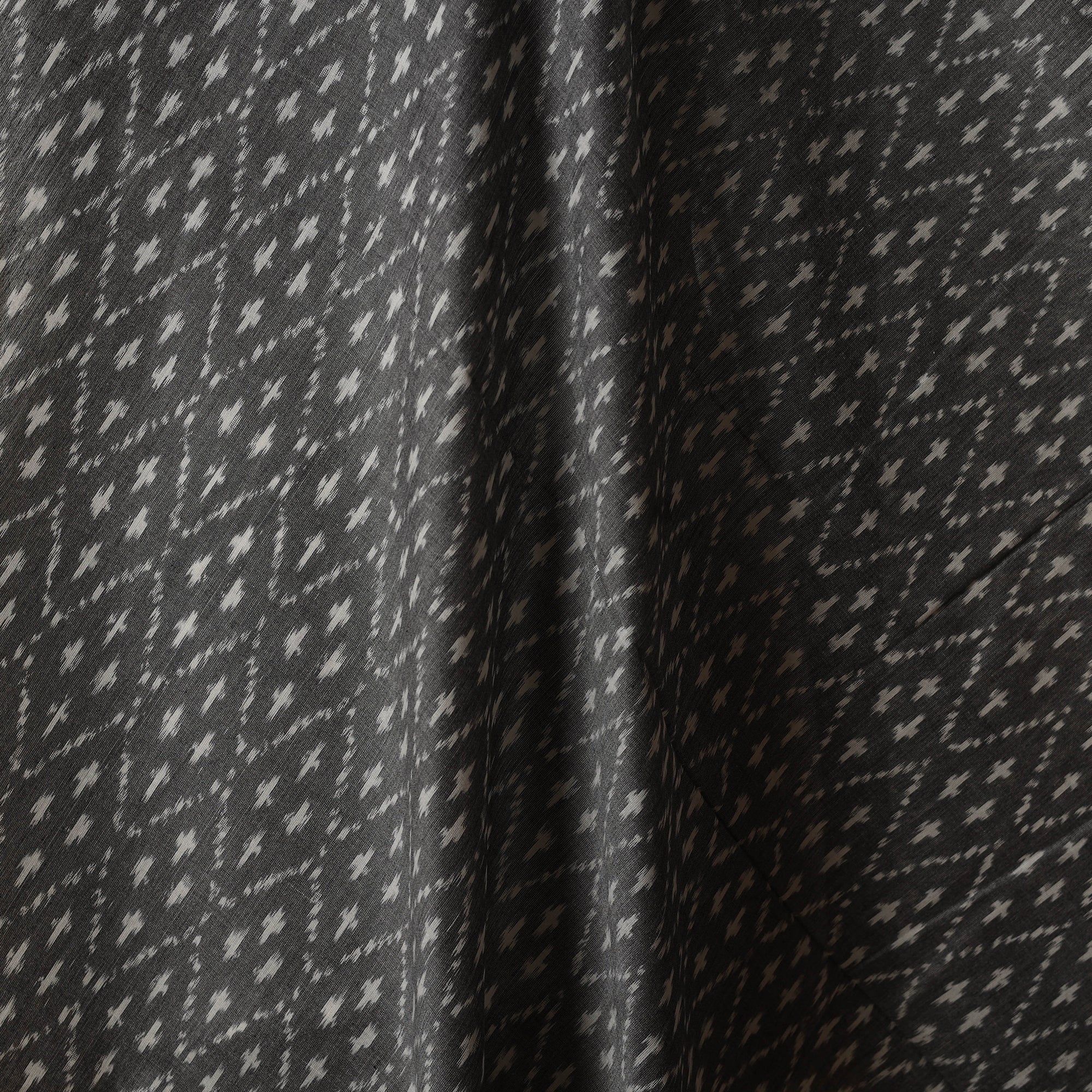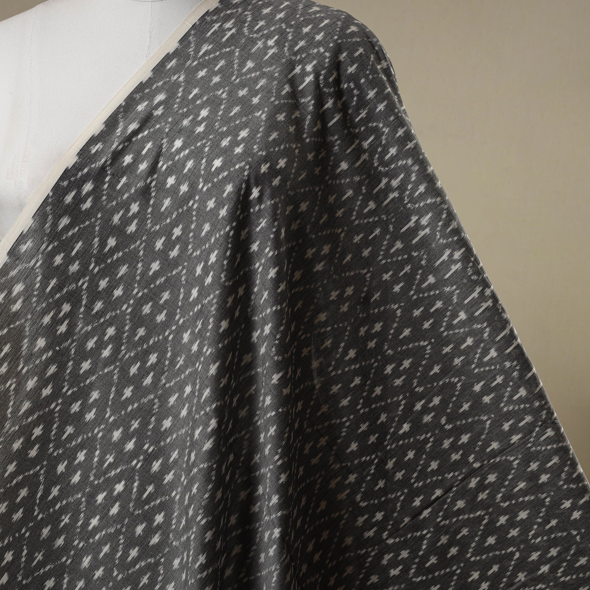 Grey handloom mercerised cotton pochampally ikat fabric from Telangana features vibrant geometric patterns created through a resist-dyeing technique where threads are dyed before weaving. Known for its smooth texture and refined finish, this durable fabric is perfect for clothing and decor, adding a touch of traditional elegance and artisanal charm to every creation.