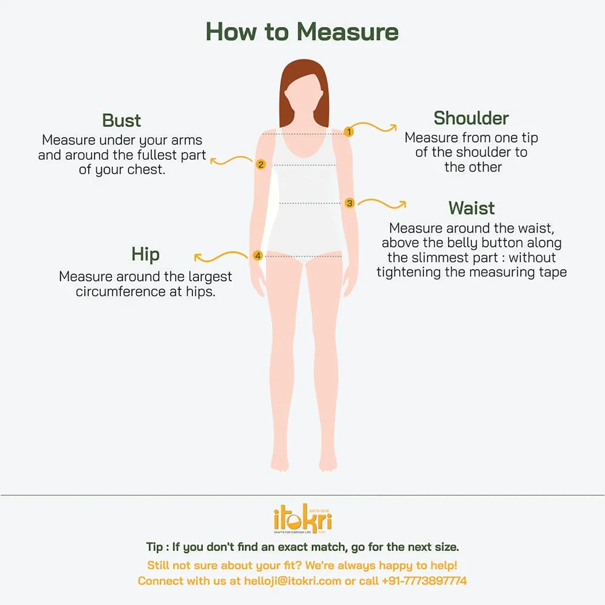 opt-in. We're always here to make sure you feel confident and happy in your itokri clothes.