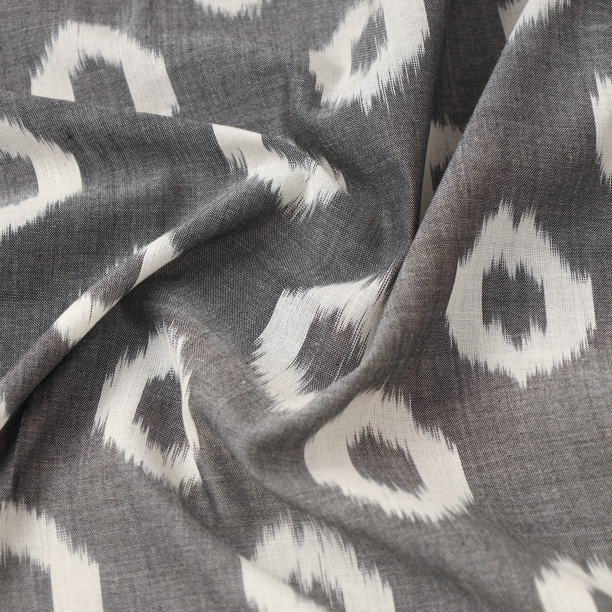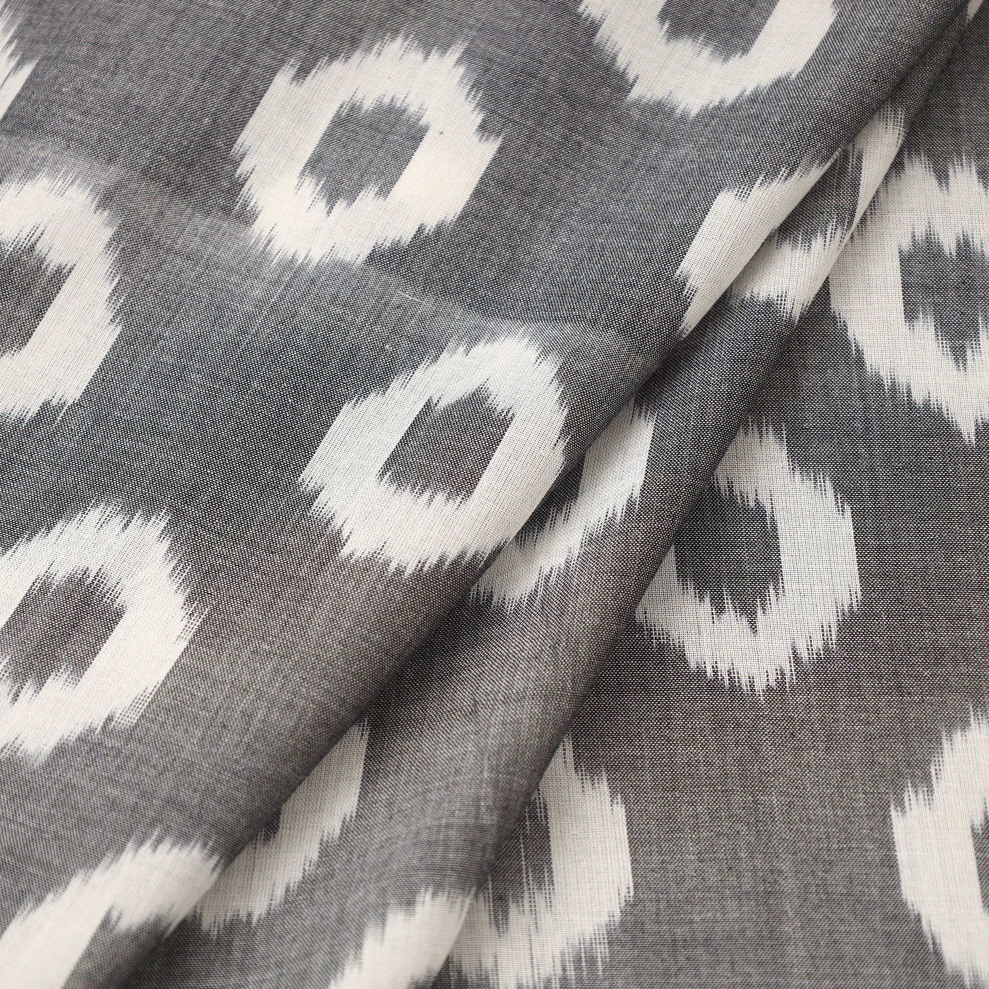 This handloom pochampally ikat fabric from Telangana is made from mercerized cotton. The patterns are created by dyeing the threads before weaving, using a traditional resist-dyeing method. The fabric is light, comfortable, and suitable for making kurtas, dresses, or home decor items.