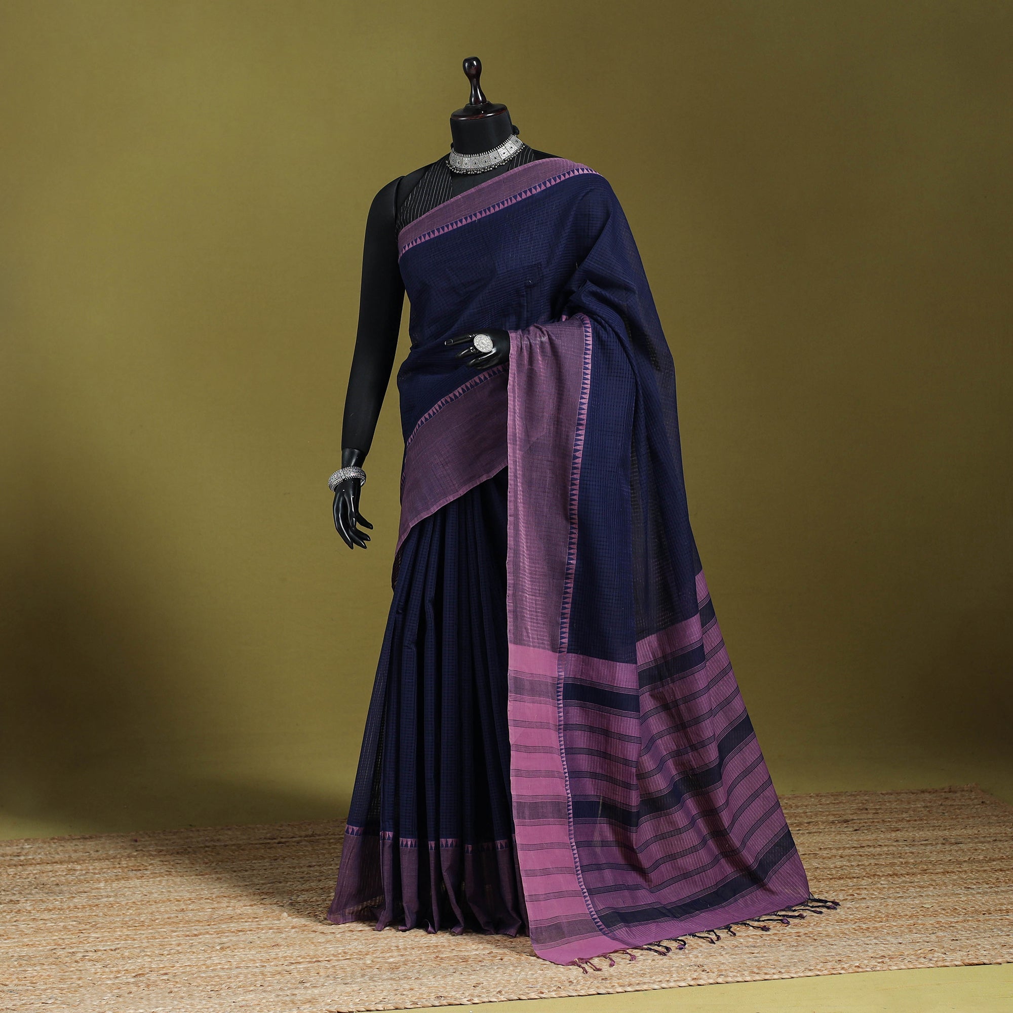 Add a touch of graceful elegance to your look with a blue mangalagiri handloom missing checks cotton saree from Andhra Pradesh. Known for its fine texture and beauty, this saree blends breathable comfort with traditional charm. The thread border adds a subtle shimmer, while the cotton makes it ideal for everyday wear. Finished with elegant tassels, it’s perfect for casual outings, family gatherings, or festive occasions.