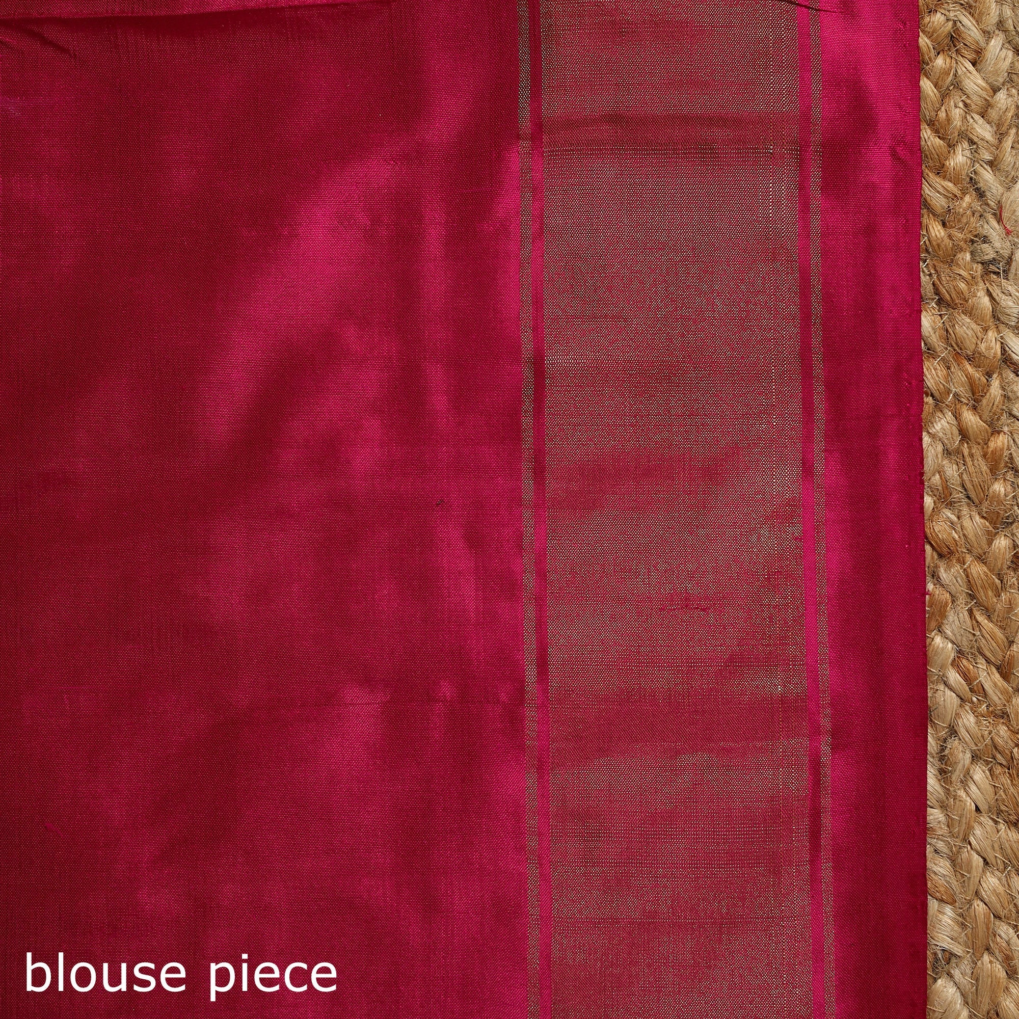 Purple handloom mulberry silk patola ikat pochampally saree from Telangana showcases detailed patterns created using the traditional resist-dye ikat process. Pochampally ikat is a centuries-old weaving tradition known for its precise thread-dyeing method. The mulberry silk base offers a graceful fall, complemented by vibrant colours and signature geometric motifs. This saree is a beautiful choice for special occasions and for anyone who values authentic Indian textiles.