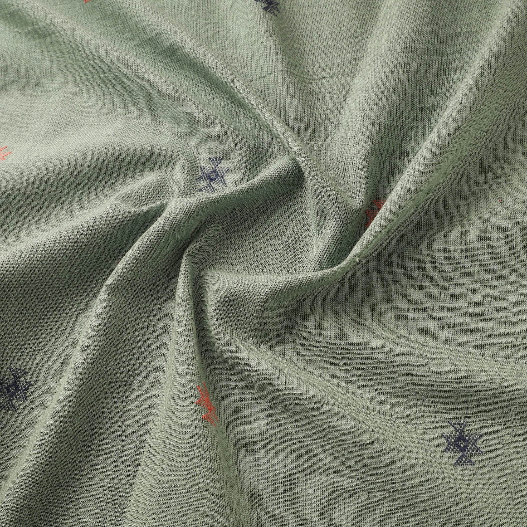 Fine-quality organic kala cotton handloom buti fabric from Kutch features intricate woven butis that add subtle texture and charm. Each motif reflects traditional artistry, making it perfect for creating elegant kurtas, saree blouses, dupattas, stoles, home decor items and accessories. Made from 100% certified organic cotton and azo-free dyes, it’s breathable, durable and soft.