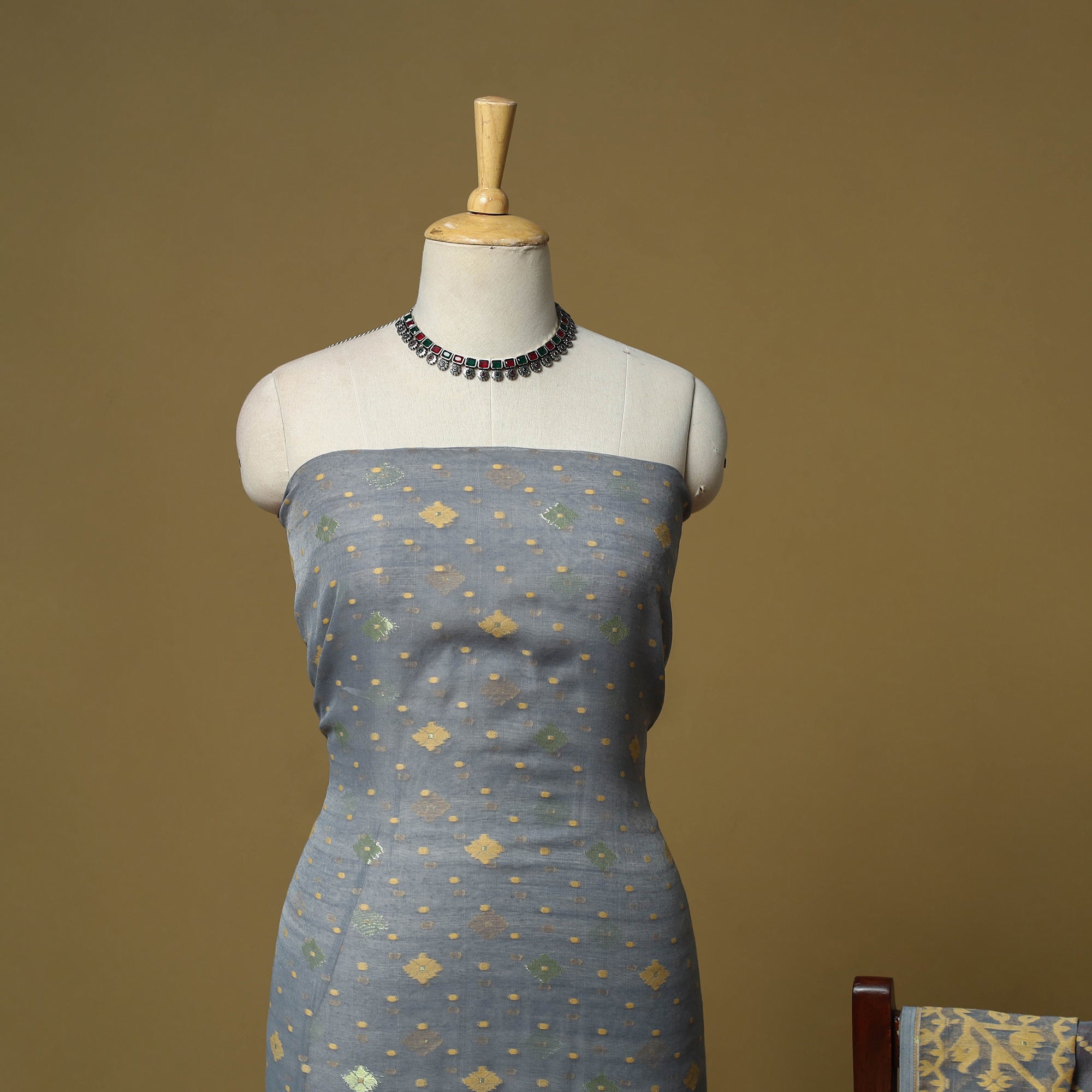 • Handloom phulia jamdani silk cotton 2pc unstitched dress