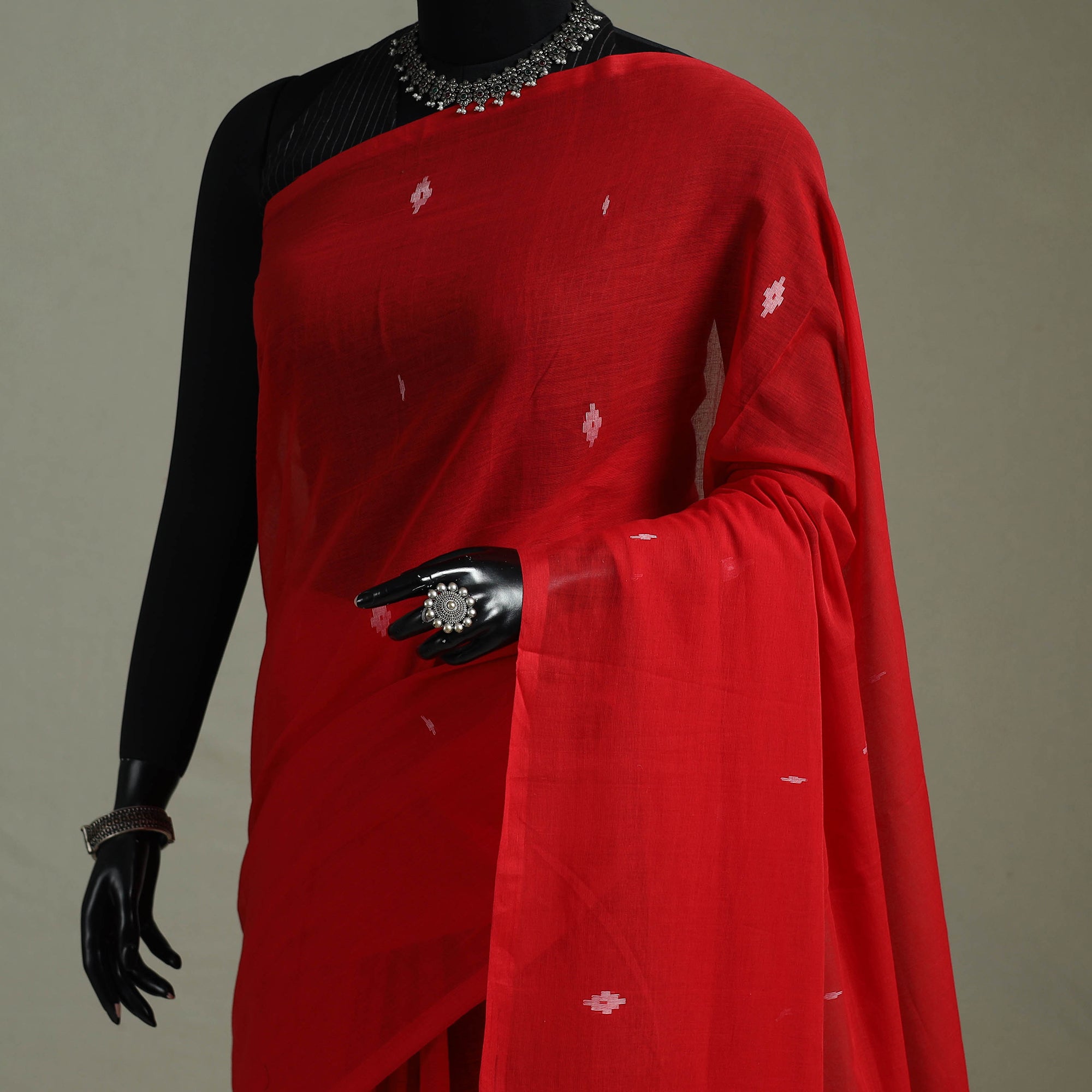 Handwoven jamdani pure mul cotton saree from Phulia, West Bengal, reflects the artistry of skilled Bengali artisans who continue one of the oldest weaving traditions of the region. Created using the intricate extra-weft Jamdani technique, delicate buti motifs are woven directly on the loom, giving them the appearance of fine embroidery, while tassel details add elegance. Ideal for occasions or everyday wear.