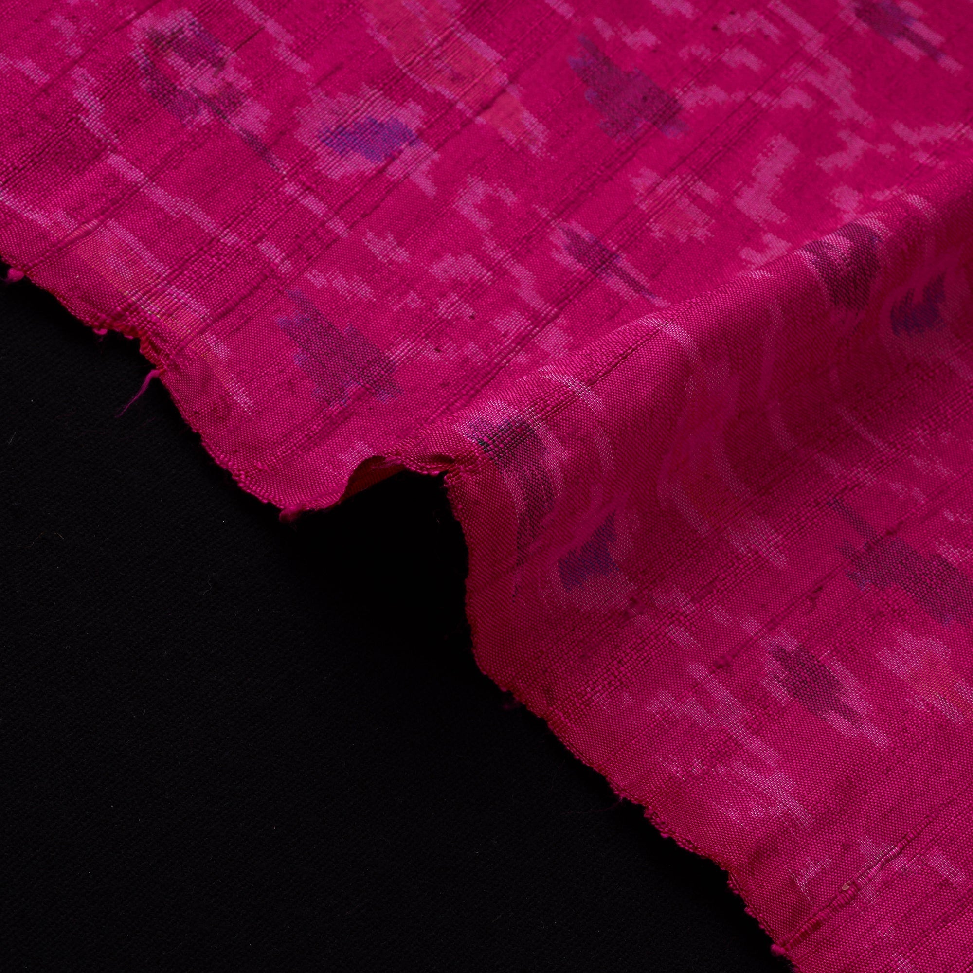 Pink pure handloom pochampally ikat raw silk fabric from Telangana. Created using the Ikat resist-dye technique, where the warp and weft yarns are carefully dyed before weaving, this fabric is ideal for garments as well as creating home decor pieces.
