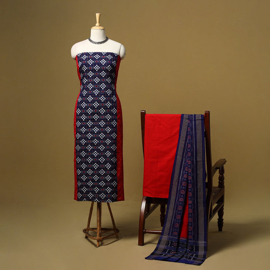Handloom Sambalpuri Ikat Cotton 3pc Unstitched Dress Material 23