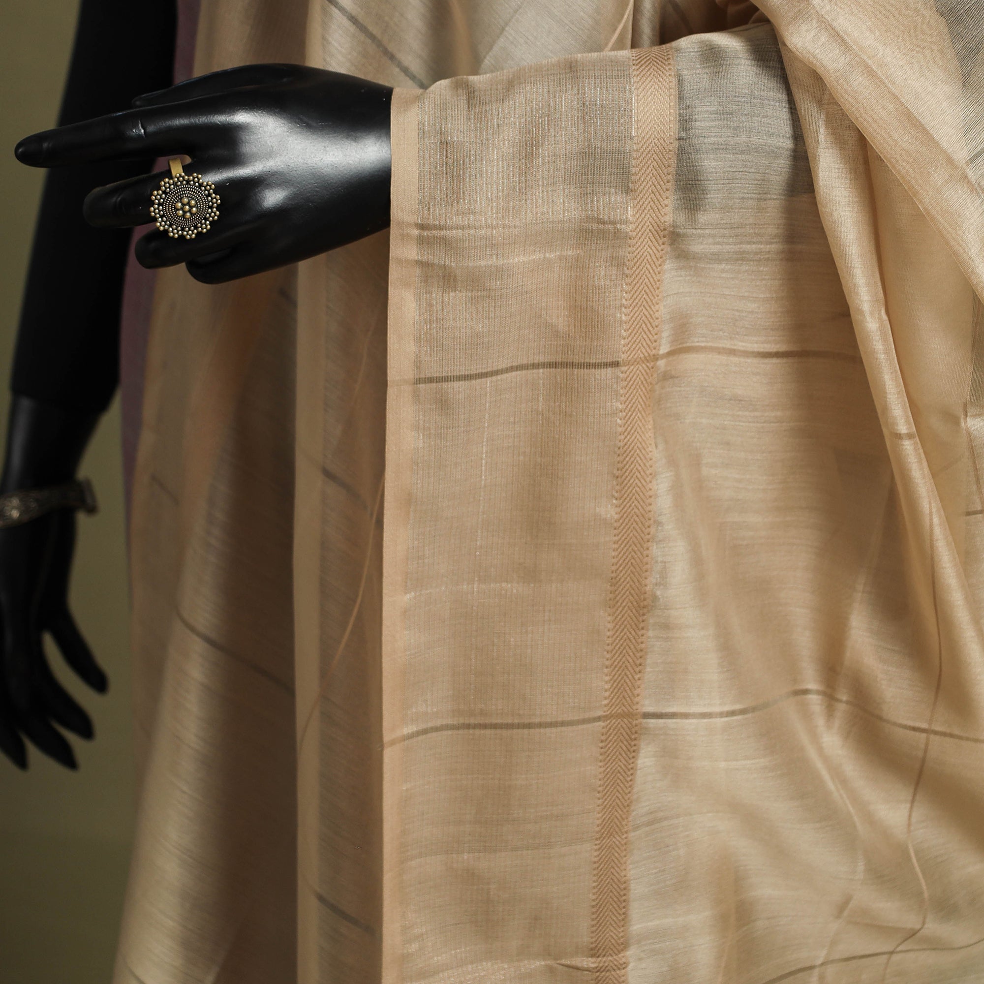 This beige handloom silk-cotton maheshwari dupatta is woven with a legacy rooted in centuries of tradition. Featuring a delicate zari border, it offers a timeless appeal. The fabric is light, airy, and soft to the touch, lending effortless grace when draped. Crafted by skilled weavers from Maheshwar, it reflects generations of artistry and brings refined charm to any