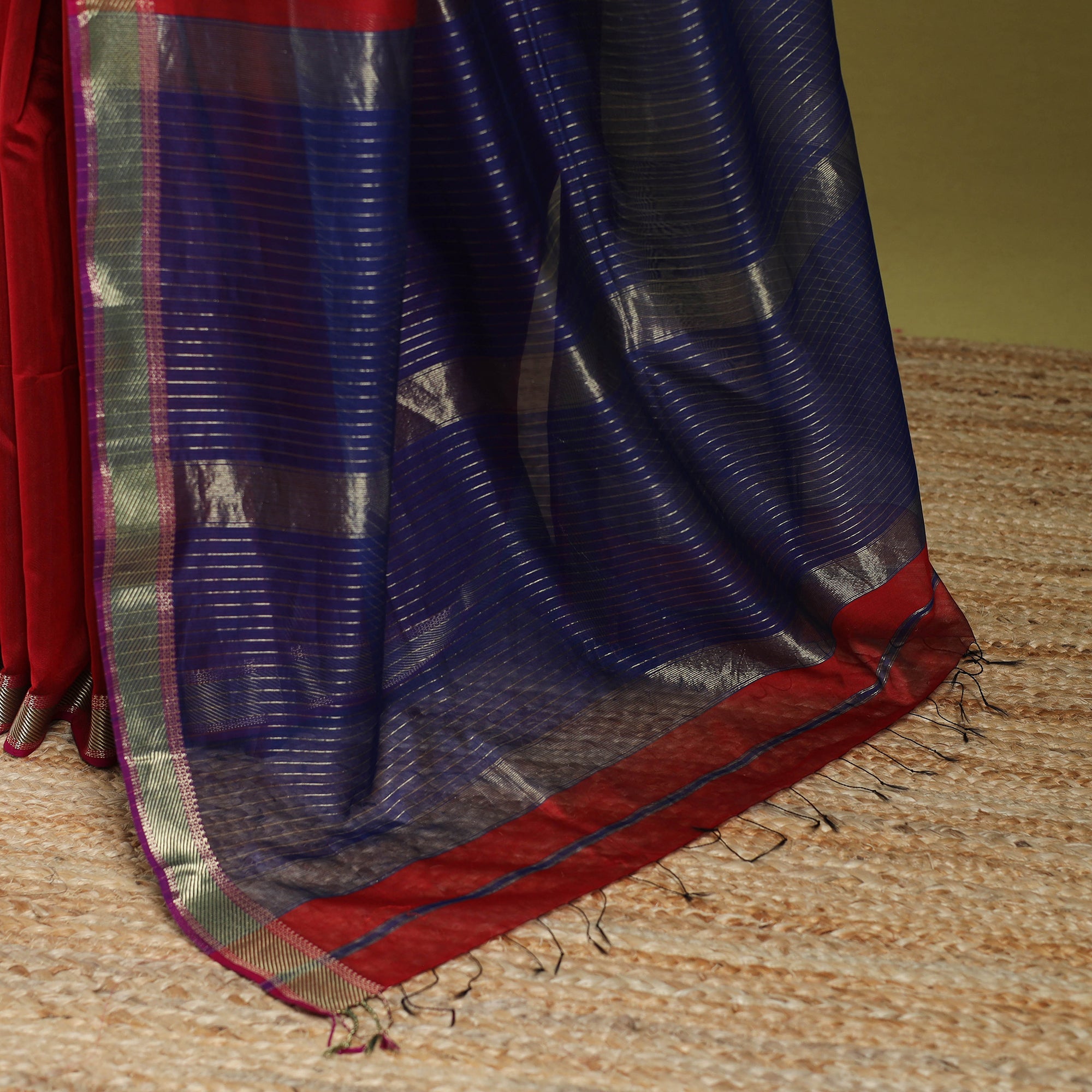 Red - Handloom Silk Cotton Maheshwari Saree with Zari Border 06
