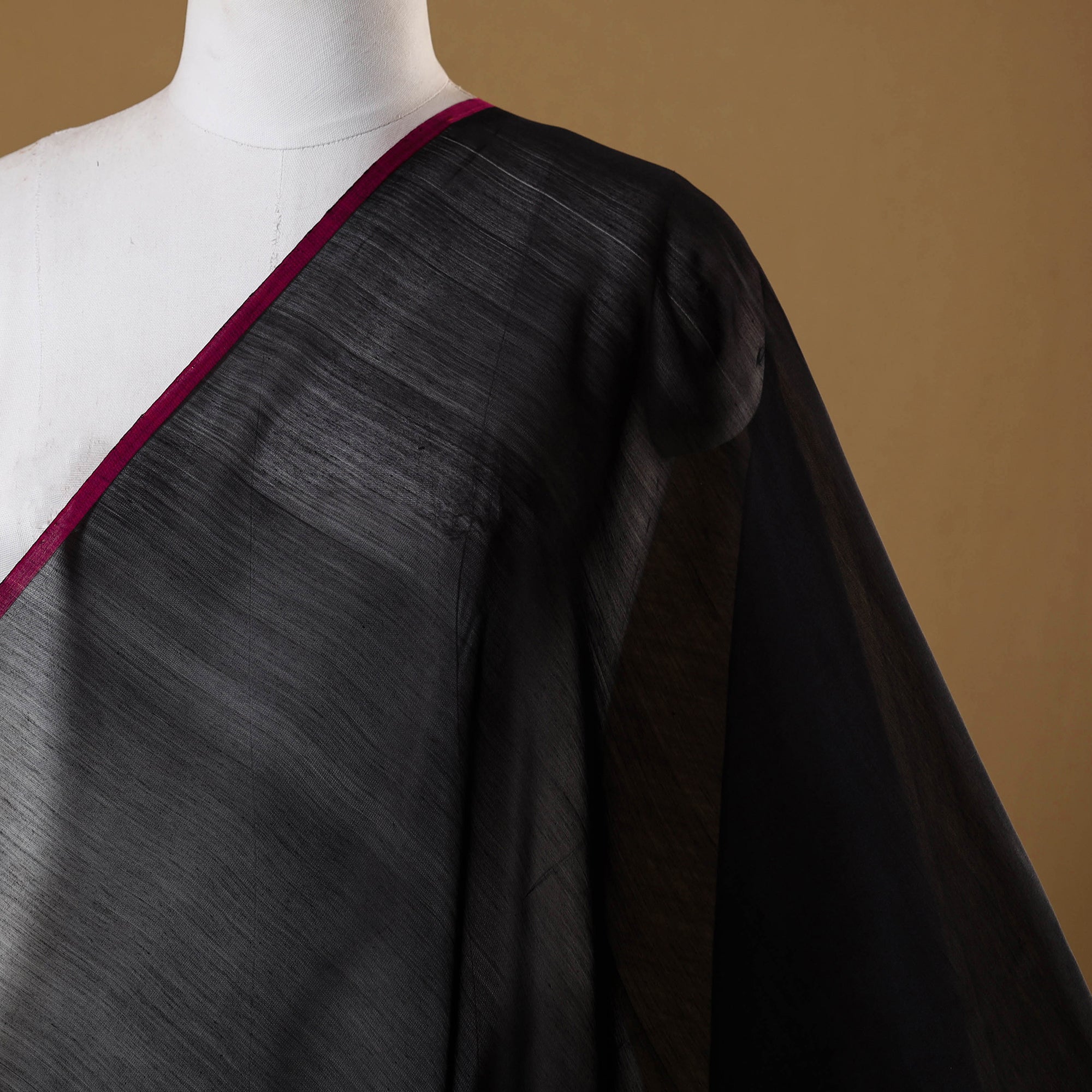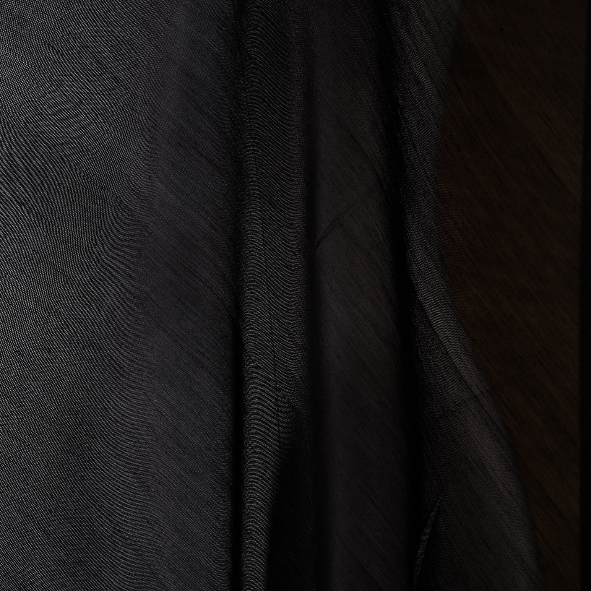 This black plain chanderi fabric is handwoven in Madhya Pradesh by master artisan Rauph Khan. Celebrated for its gossamer texture and refined feel, this exquisite weave combines silk and cotton to bring effortless elegance to everyday wear. Perfect for crafting kurtas, dresses, cushion covers, curtains, dupattas, and other timeless creations.