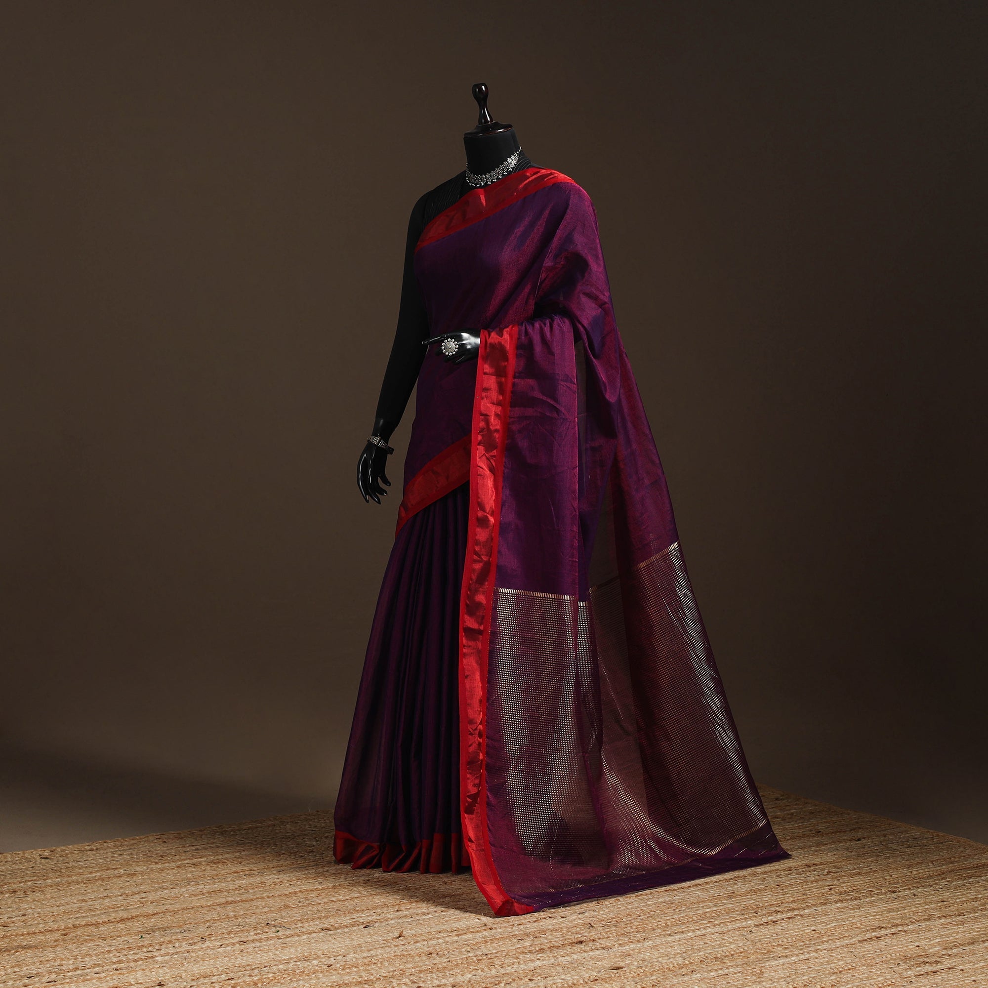 A real silk saree will have slight variations in texture uniformity, which are quite noticeable.