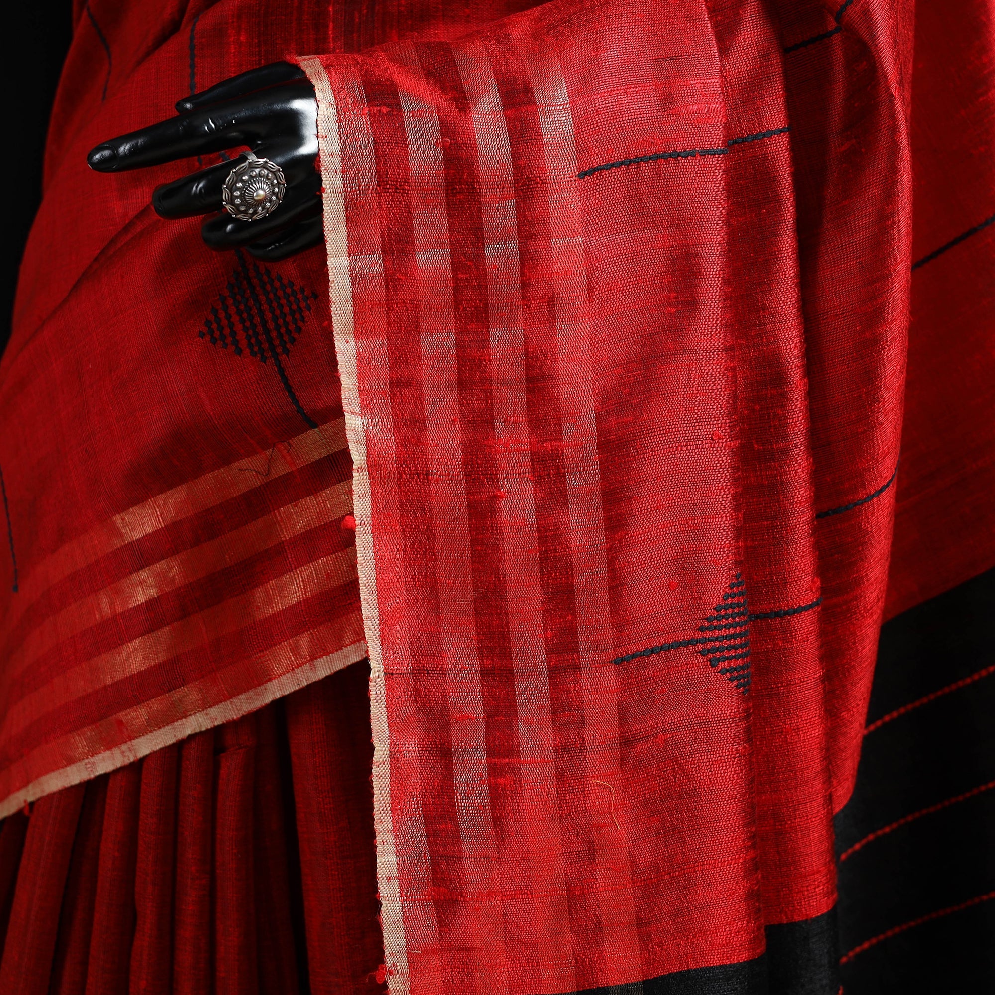A real silk saree will have slight variations in texture uniformity, which are quite noticeable.