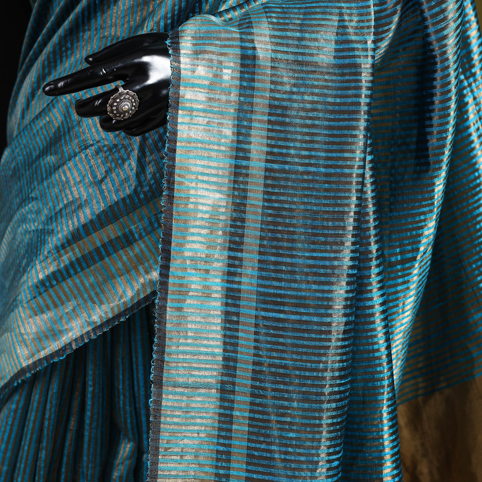 Blue pure handloom bhagalpuri saree is made from tussar-dupion silk, sourced from Bhagalpur. Crafted by skilled artisans using age-old weaving methods, it showcases intricate patterns and subtle motifs that capture the essence of bhagalpuri artistry. The zari border lends a refined charm, while the silk’s natural luster and smooth drape make it a pleasure to wear. Perfect for both festive and formal occasions.
