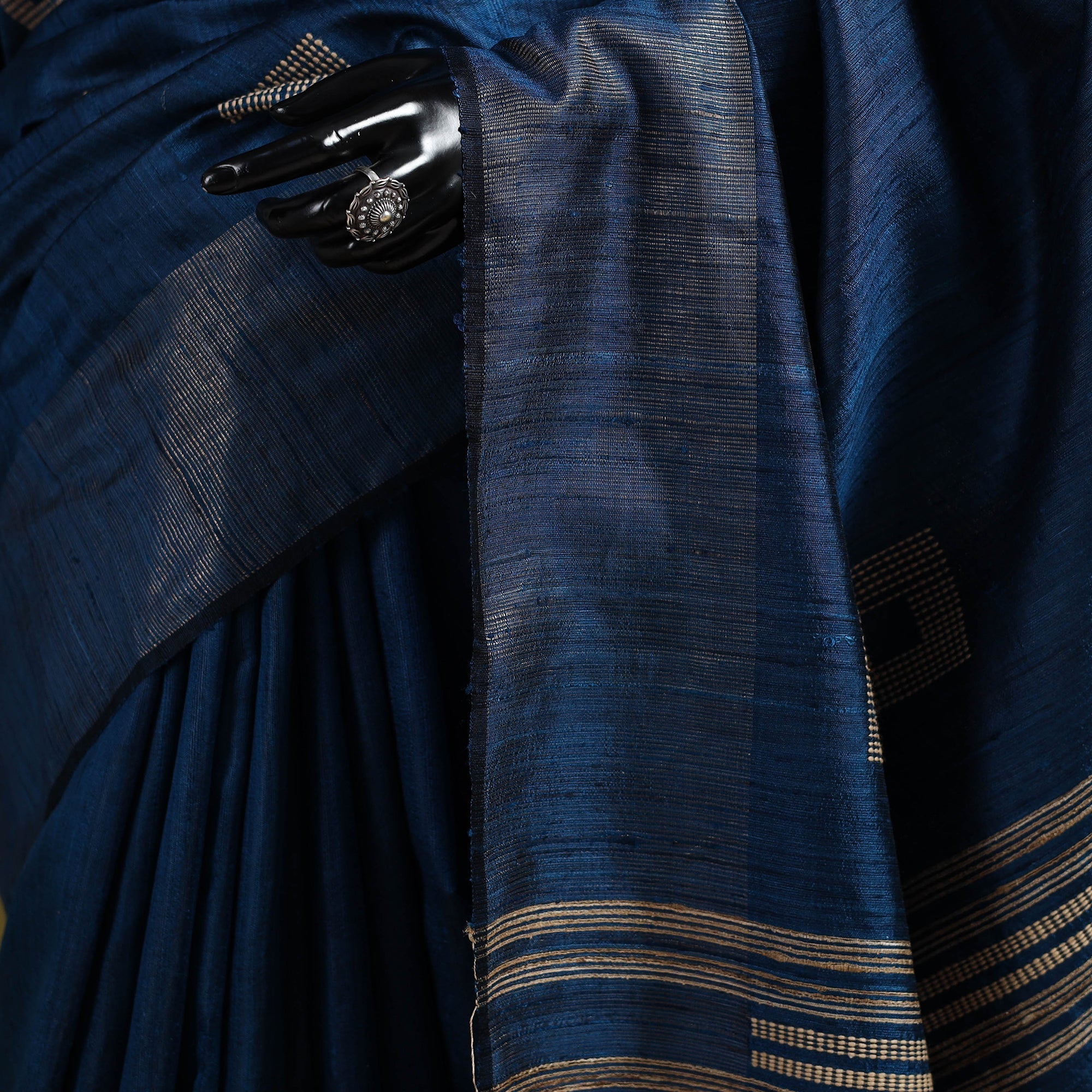 A real silk saree will have slight variations in texture uniformity, which are quite noticeable.