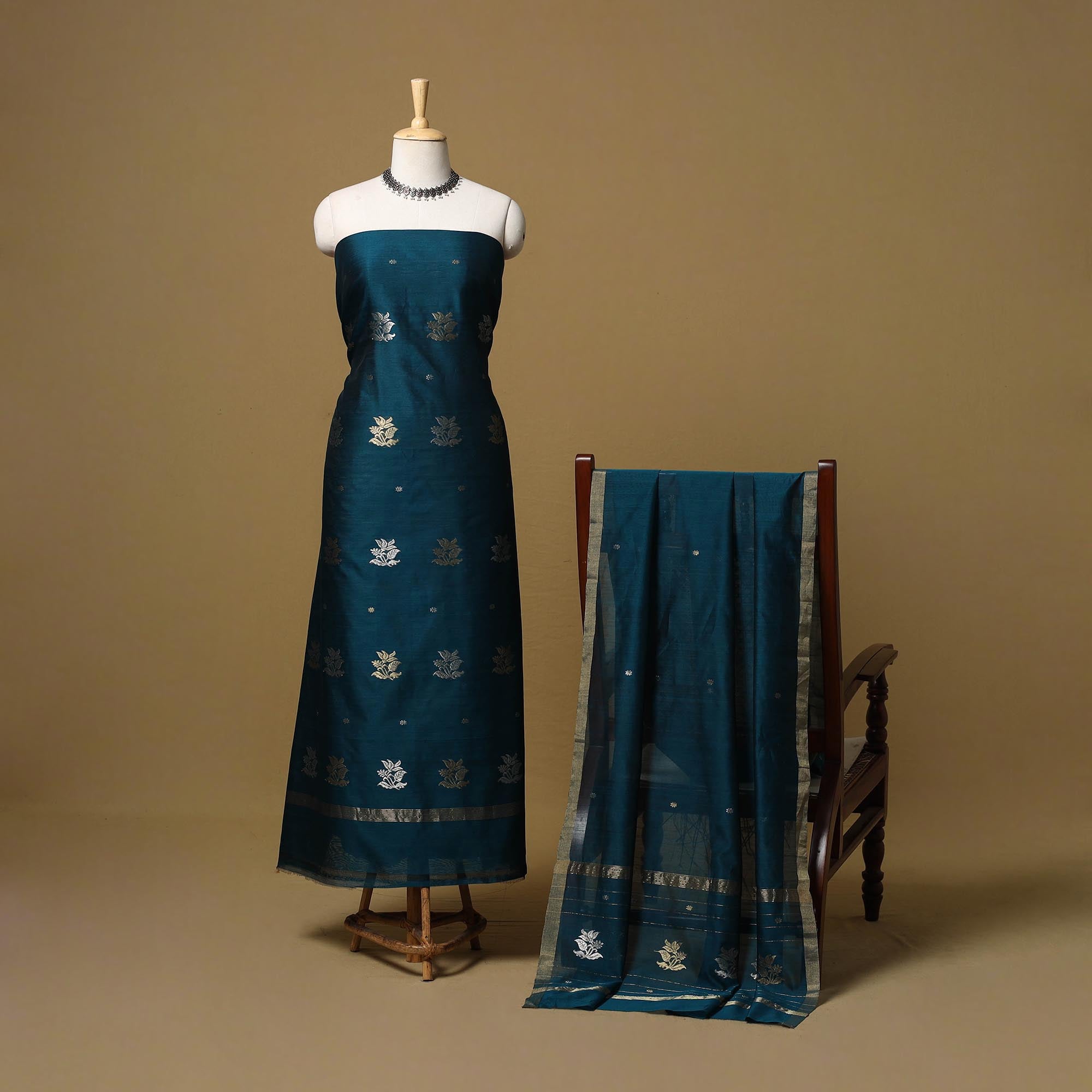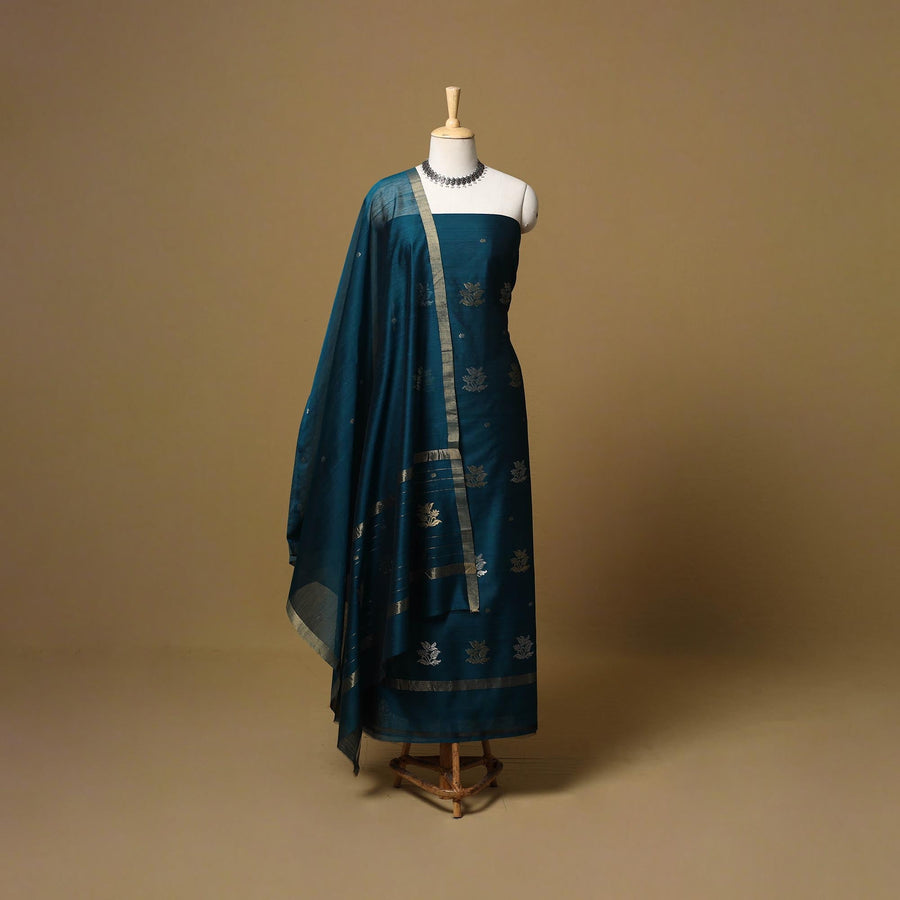 Handloom Zari Buti Chanderi Silk 2pc Unstitched Dress Material 13