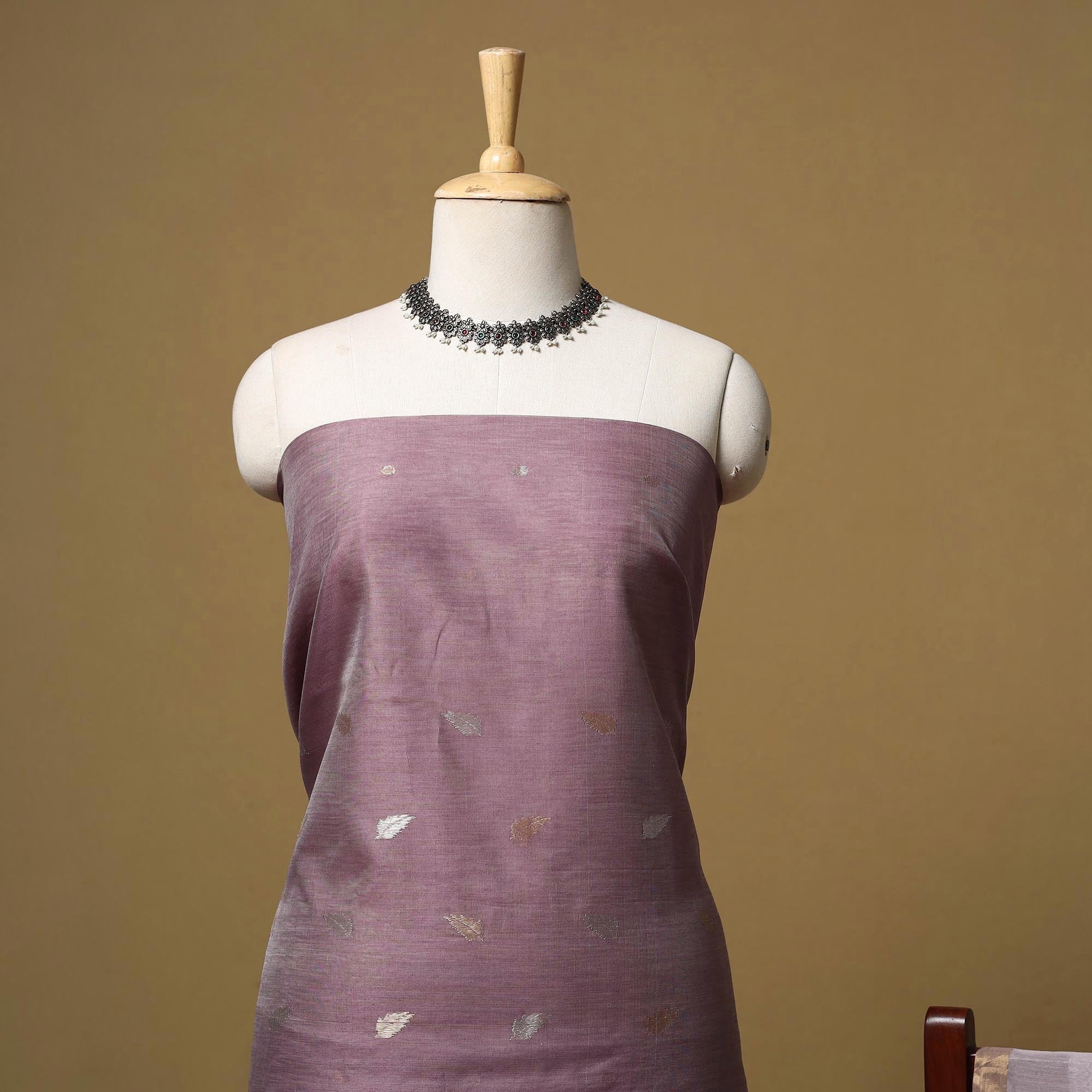 Handloom chanderi 2pc unstitched dress material is crafted by master artisan Rauf Khan in Chanderi, Madhya Pradesh. Made from a chanderi silk and mercerised cotton blend, it features zari buti motifs and a woven border. Lightweight with a sheer drape, the set includes fabric for a kurta and dupatta, making it ideal for festive occasions, family gatherings and cultural events.