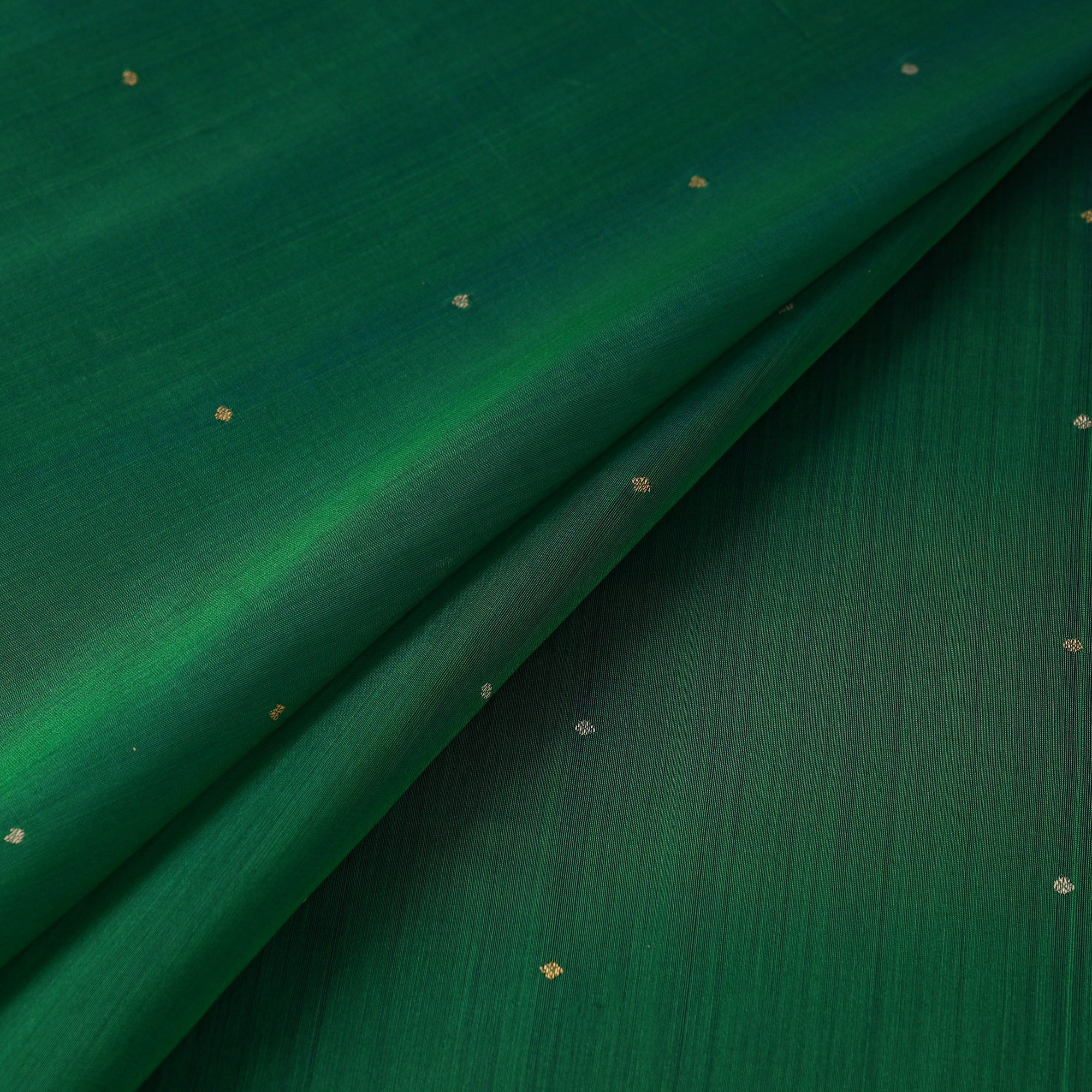 Green - Handloom Zari Buti Chanderi Silk Fabric 04