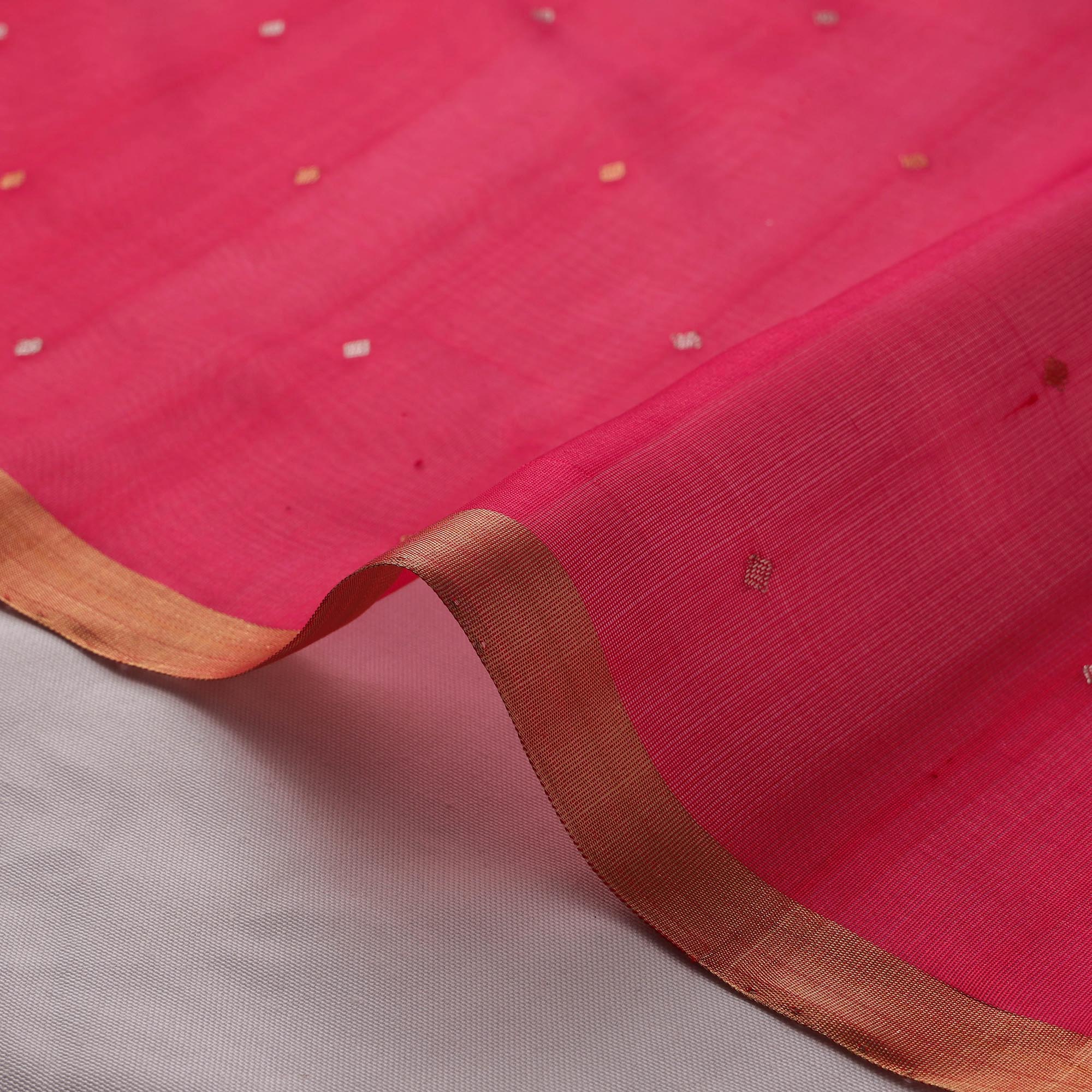 Pink - Handloom Zari Buti Pure Chanderi Silk Fabric 12