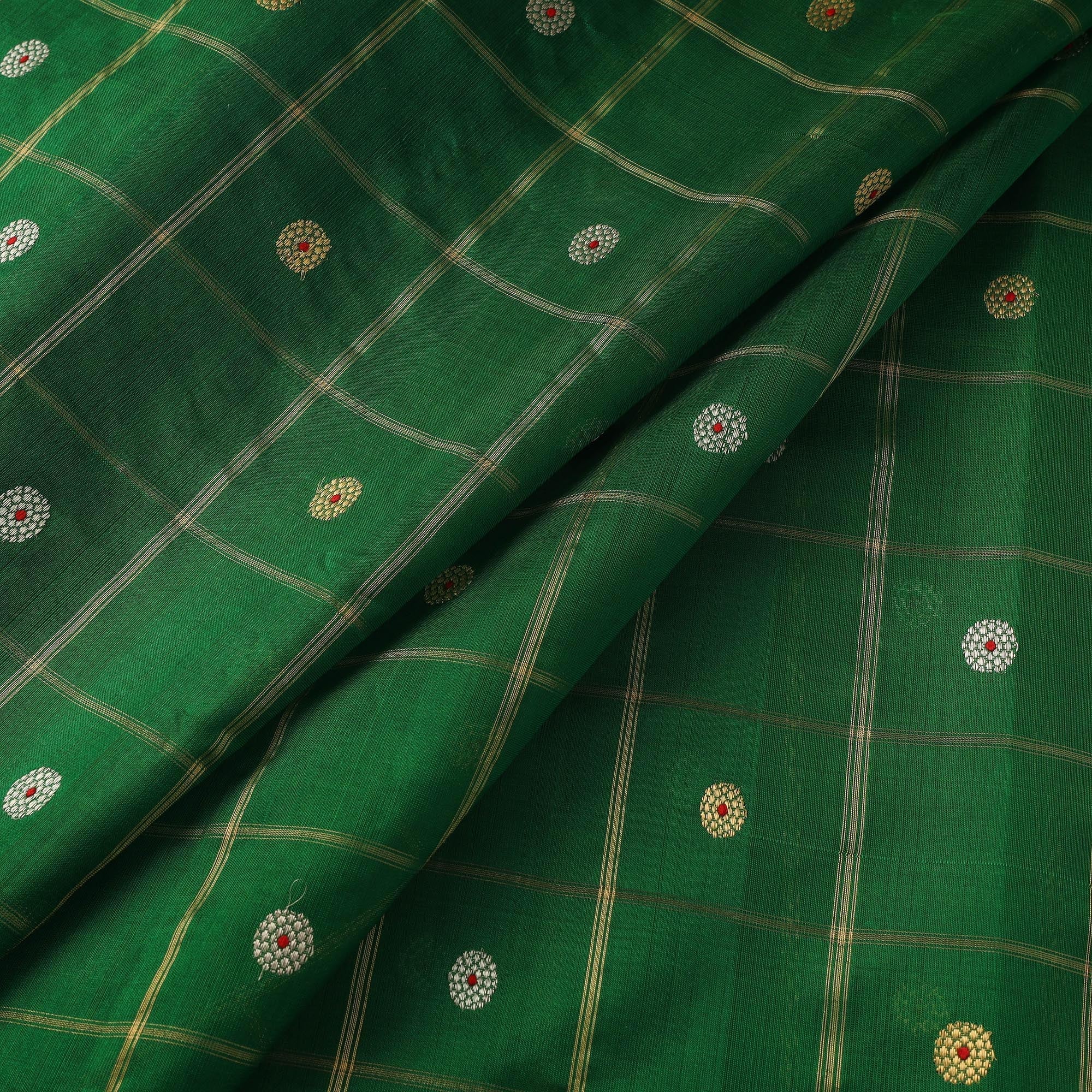 Green - Handloom Zari Buti Pure Chanderi Silk Fabric 07