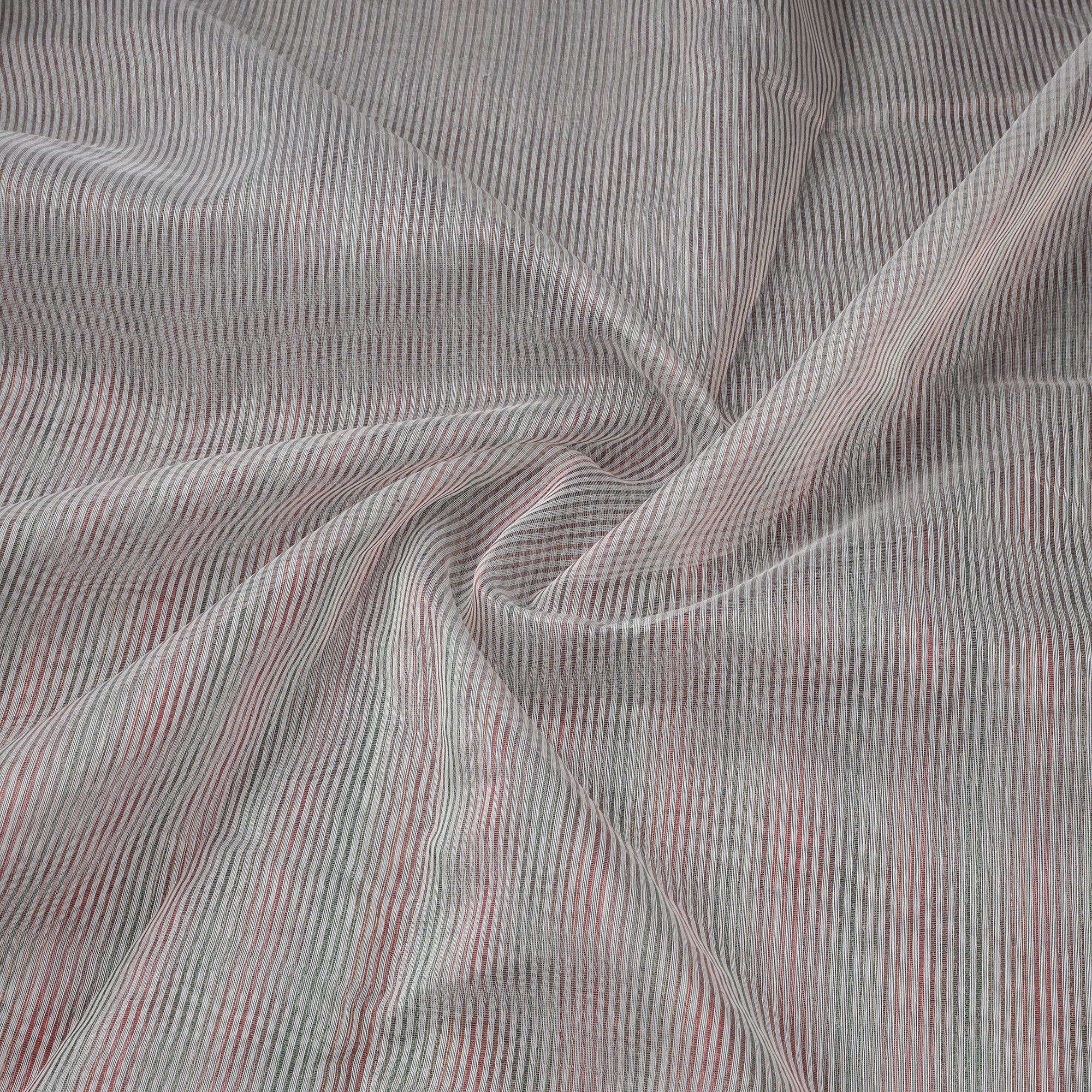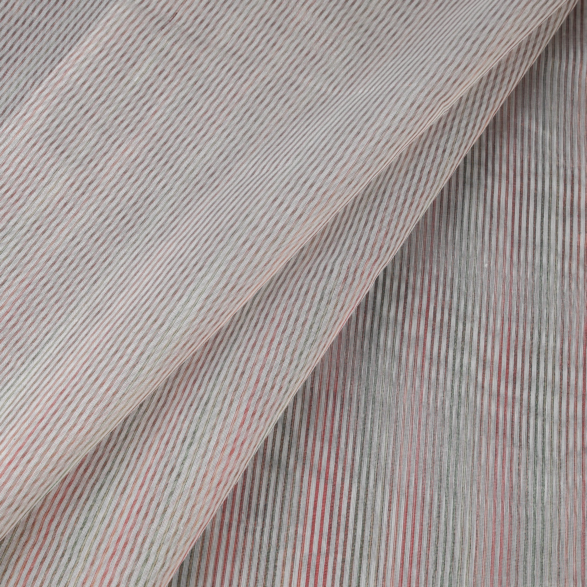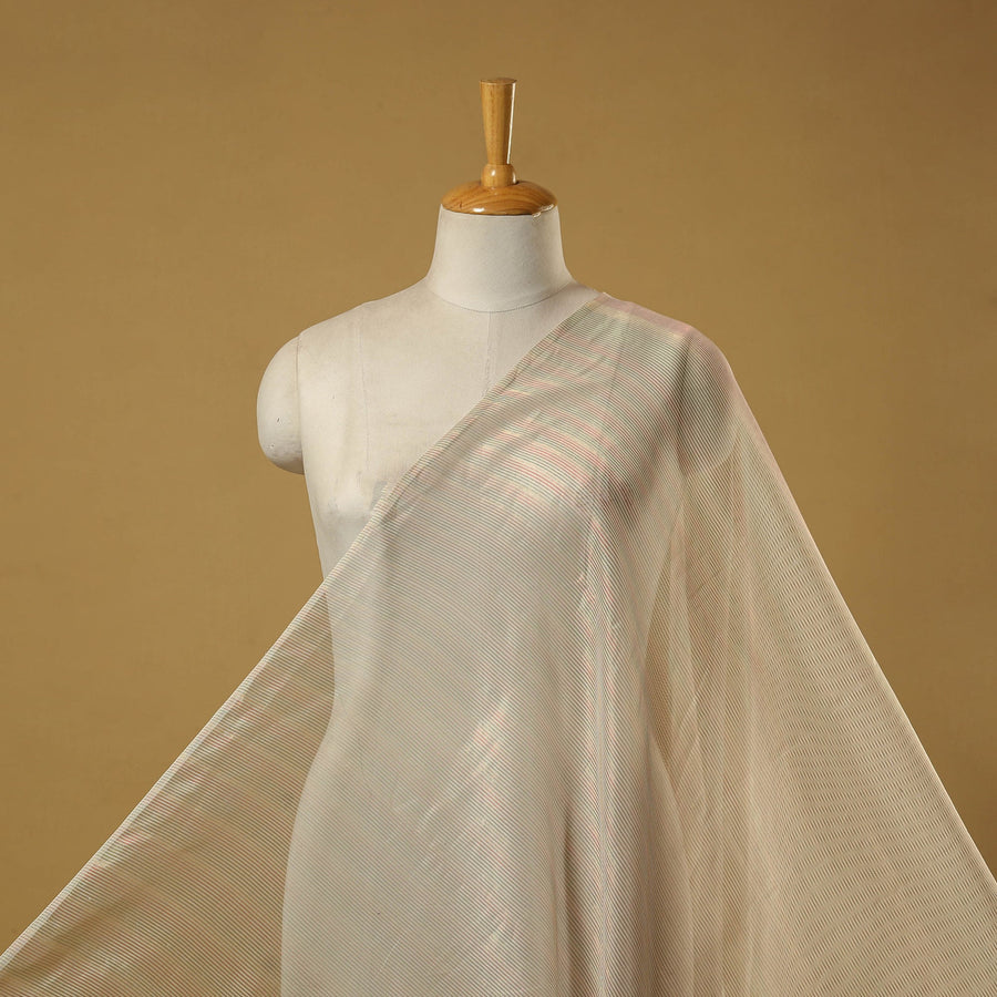 Pure handloom zari stripes chanderi fabric is woven by master artisan Rauph Khan from Madhya Pradesh. Originating from the historic town of Chanderi, this weave is known for its lightweight texture. Handloom weaving in chanderi combines silk and mercerised cotton threads to create a fabric that feels airy. Perfect for crafting kurtas, dresses, blouses, skirts, dupattas, curtains, cushion covers and more.