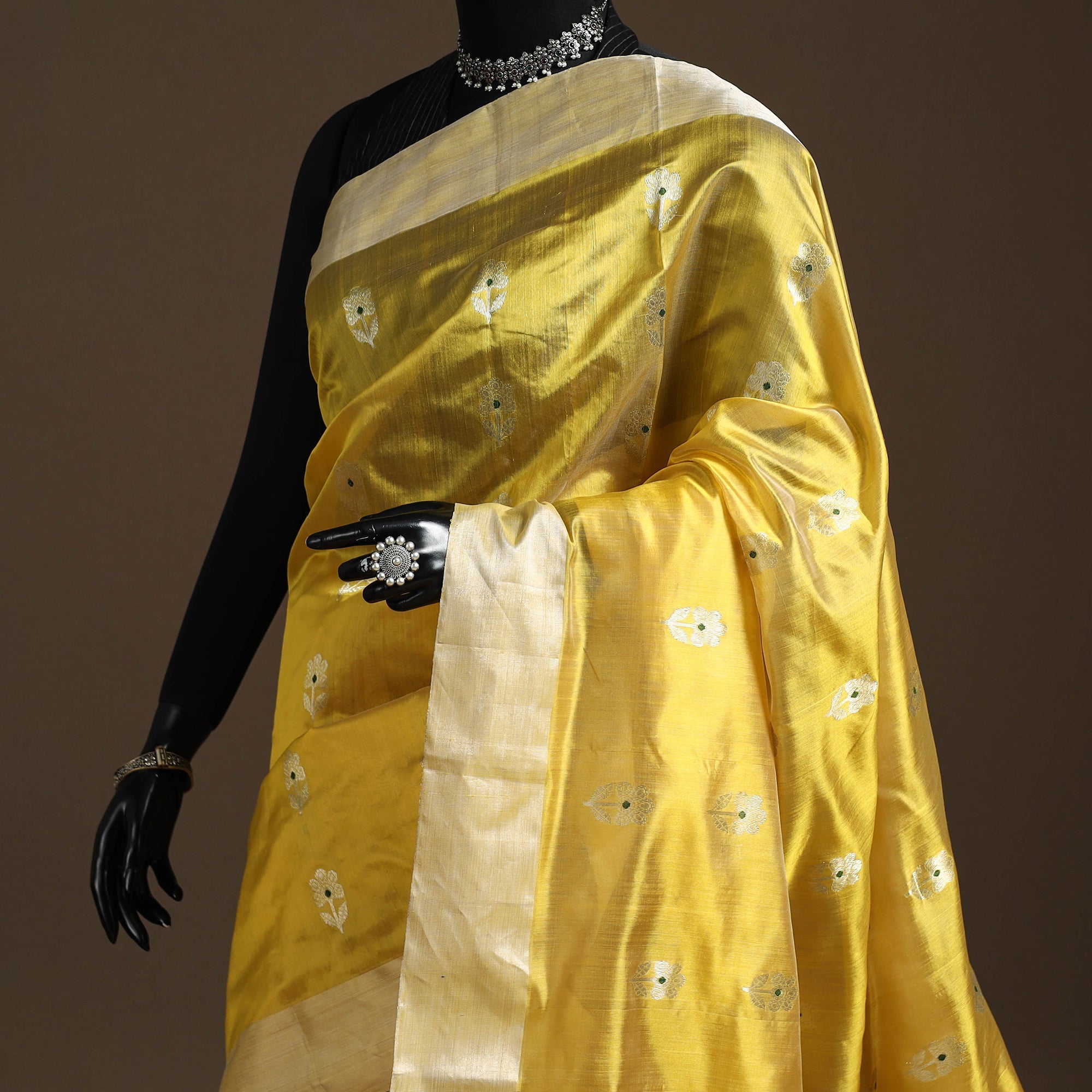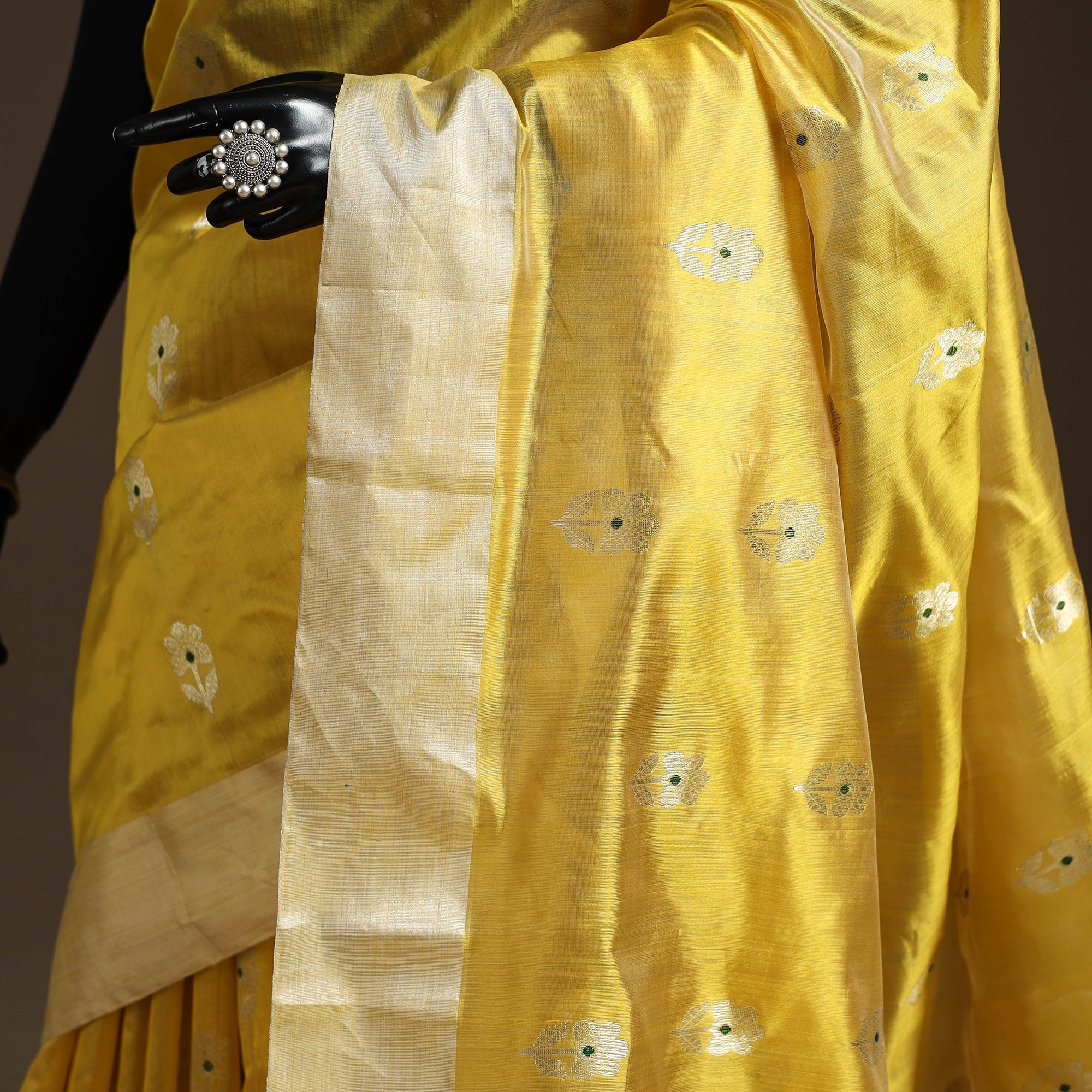 Yellow - Handloom Zari Work Pattu Chanderi Silk Saree 29