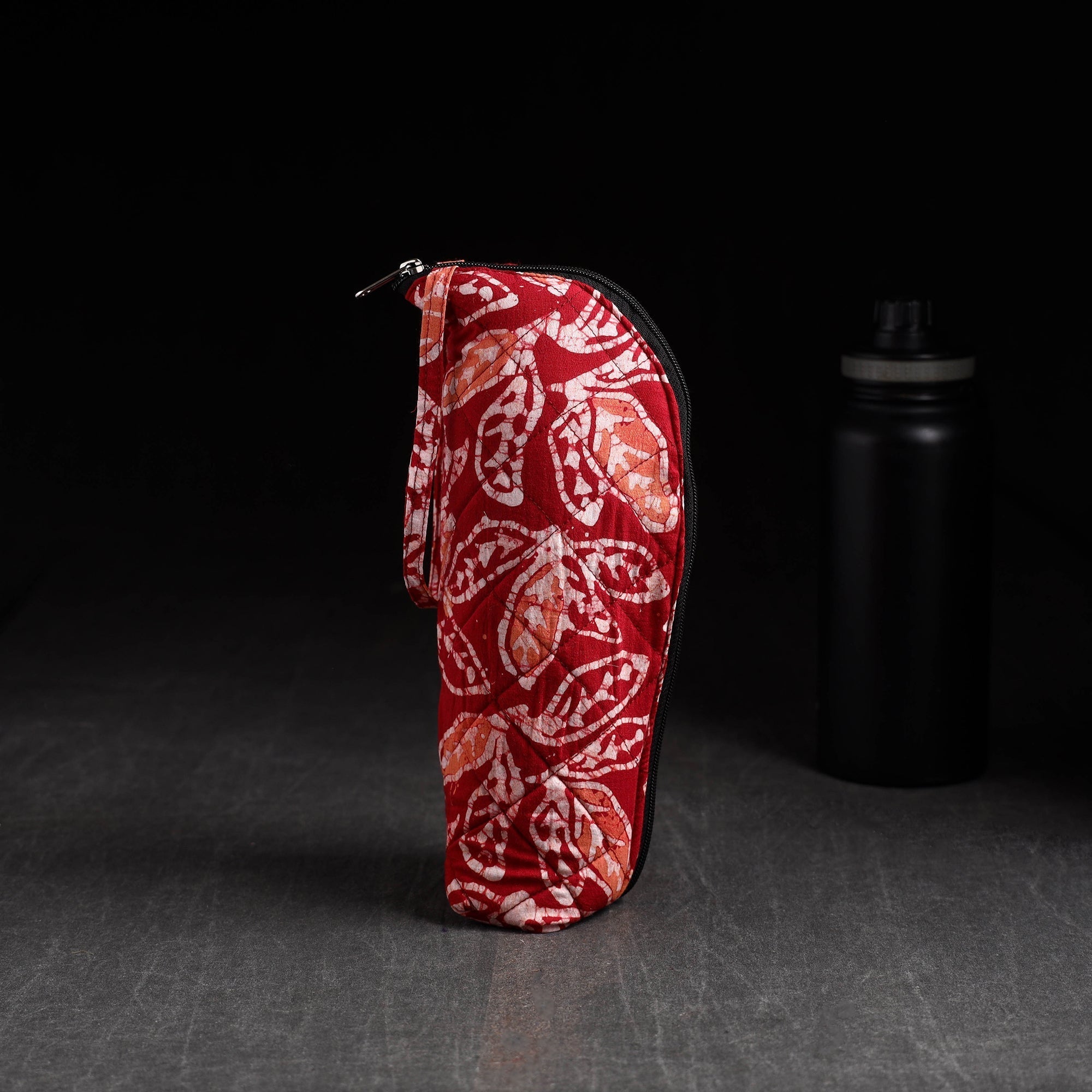 Keep your 1L bottle protected in a thoughtfully designed red fabric cover made for everyday convenience. The soft foam lining adds extra comfort, while the smooth zippered closure ensures quick access. Perfect for travel, school or office, this handy piece keeps your bottle secure and easy to carry. Crafted from durable cotton, it blends charm with daily practicality.
