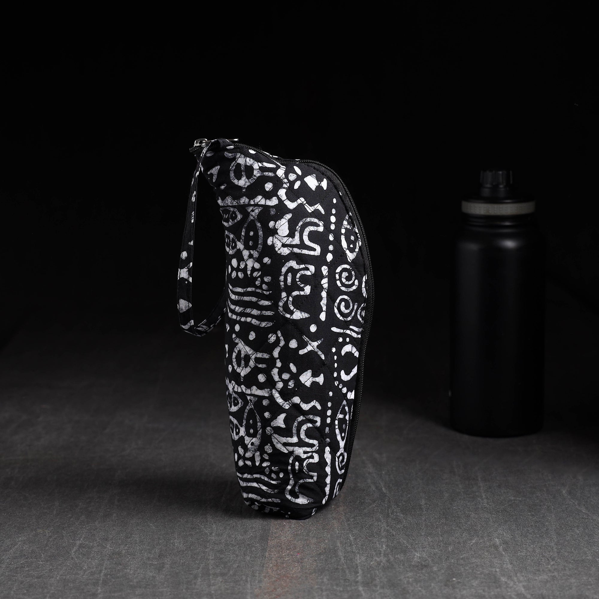 Keep your 1L bottle protected in a thoughtfully designed black fabric cover made for everyday convenience. The soft foam lining adds extra comfort, while the smooth zippered closure ensures quick access. Perfect for travel, school or office, this handy piece keeps your bottle secure and easy to carry. Crafted from durable cotton, it blends charm with daily practicality.