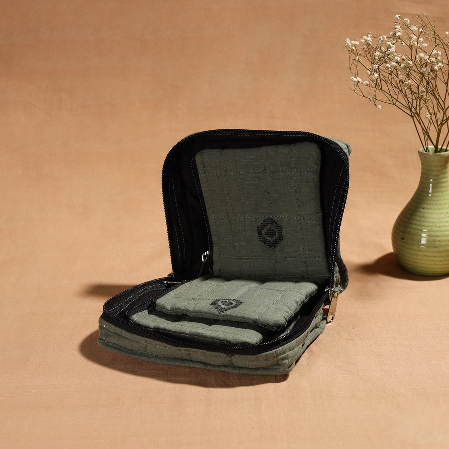 | Material | Grey handmade 4 pockets cotton jewellery bag, an eco-friendly solution crafted by skilled artisans. This bag offers ample space to organize your precious jewellery, with four spacious pockets and a soft cotton texture. |