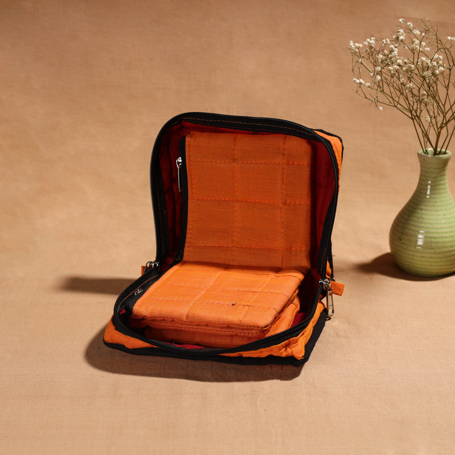 • Orange Handmade 4 Pockets Cotton Jewellery Bag