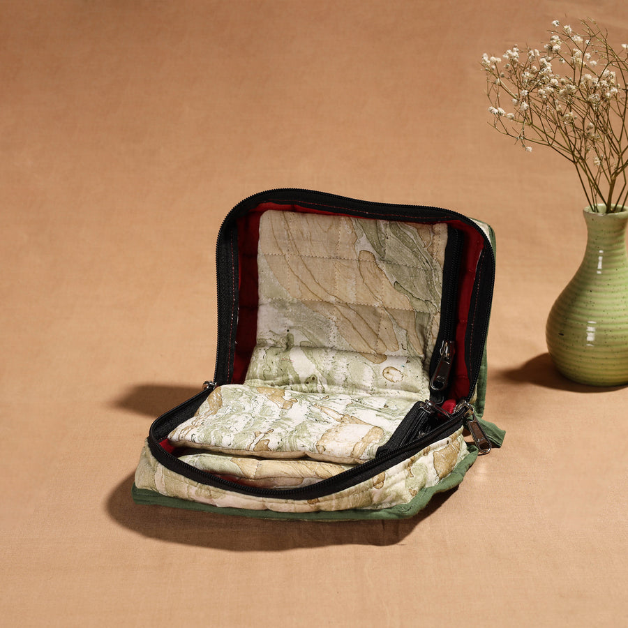 | Material | Green handmade 4 pockets cotton jewellery bag, an eco-friendly solution crafted by skilled artisans. This bag offers ample space to organize your precious jewellery, with four spacious pockets and a soft cotton texture. |