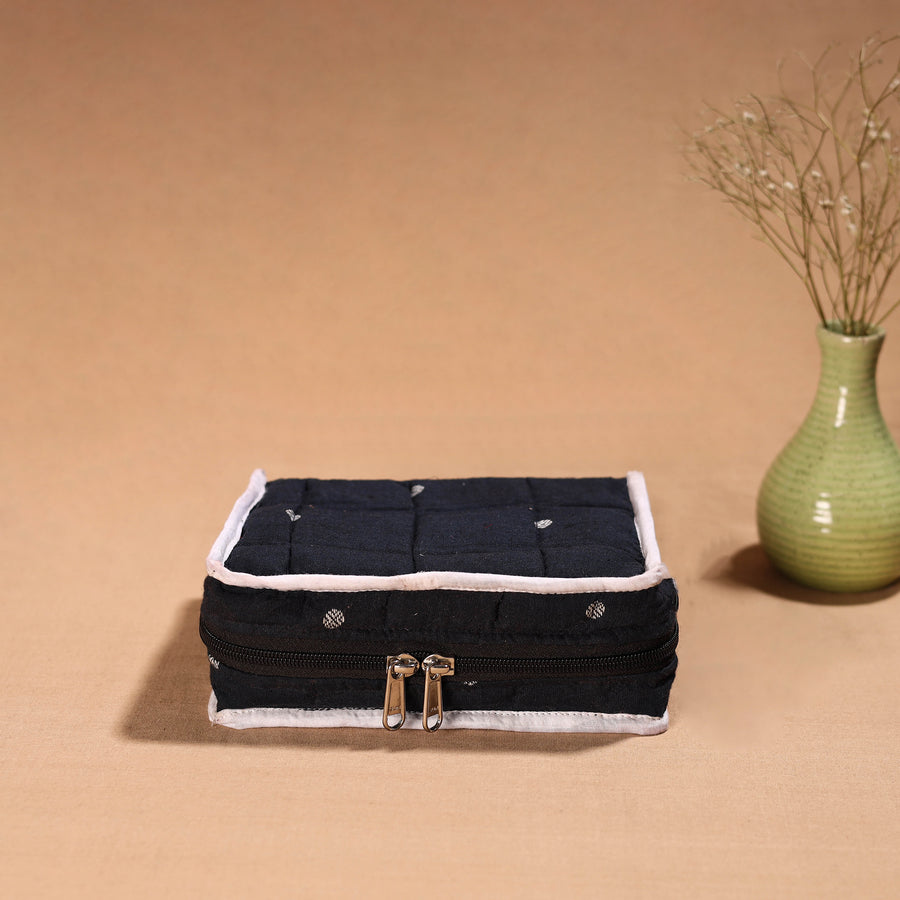 | Material | Organize your jewellery in style with this black handmade 4 pockets cotton jewellery bag. This bag offers ample space to organize your precious jewellery, with four spacious pockets and a soft cotton texture. this jewellery bag is both functional and sustainable, making it a perfect travel companion or home organizer. |