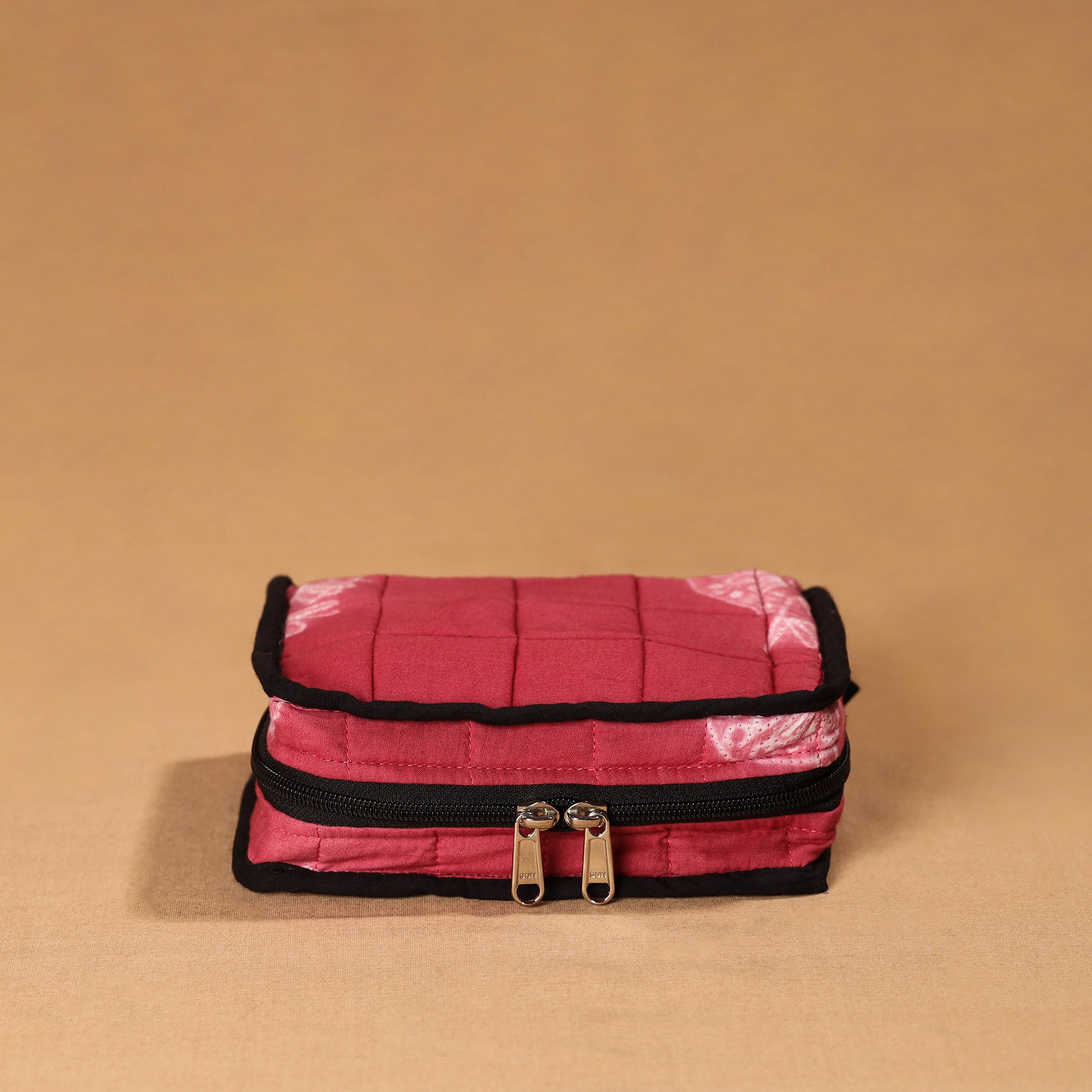 Organize your jewellery in style with this pink handmade 4 pockets cotton jewellery bag. This bag offers ample space to organize your precious jewellery, with four spacious pockets and a soft cotton texture. this jewellery bag is both functional and sustainable, making it a perfect travel companion or home organizer.