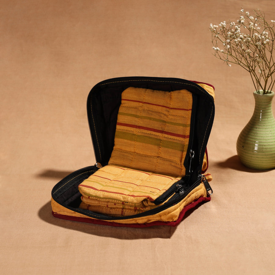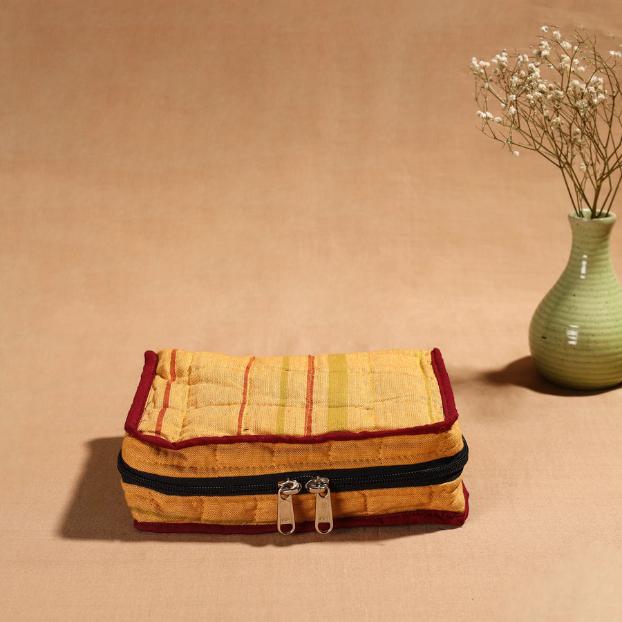 •  Yellow Handmade 4 Pockets Cotton Jewellery Bag