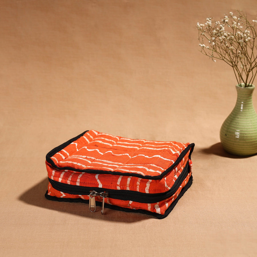 Orange handmade 4 pockets cotton jewellery bag, an eco-friendly solution crafted by skilled artisans. This bag offers ample space to organize your precious jewellery, with four spacious pockets and a soft cotton texture.