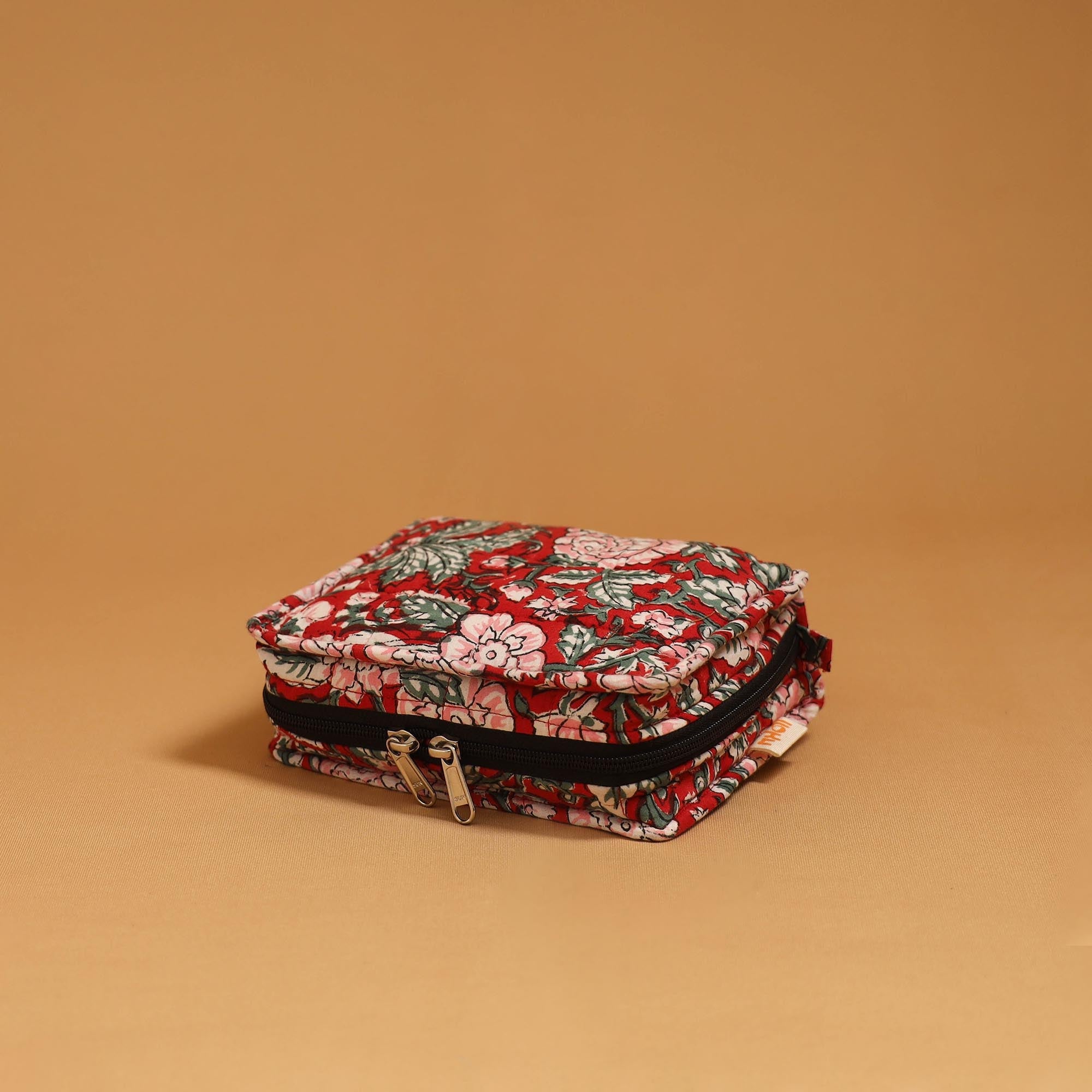Quilted jewellery bag is made using Indian handmade textiles for keeping jewellery safe and organised, this quilted jewellery organiser is designed for both convenience and elegance. Thoughtfully crafted with multiple compartments and secure closure, it ensures that your accessories remain tangle-free and protected.