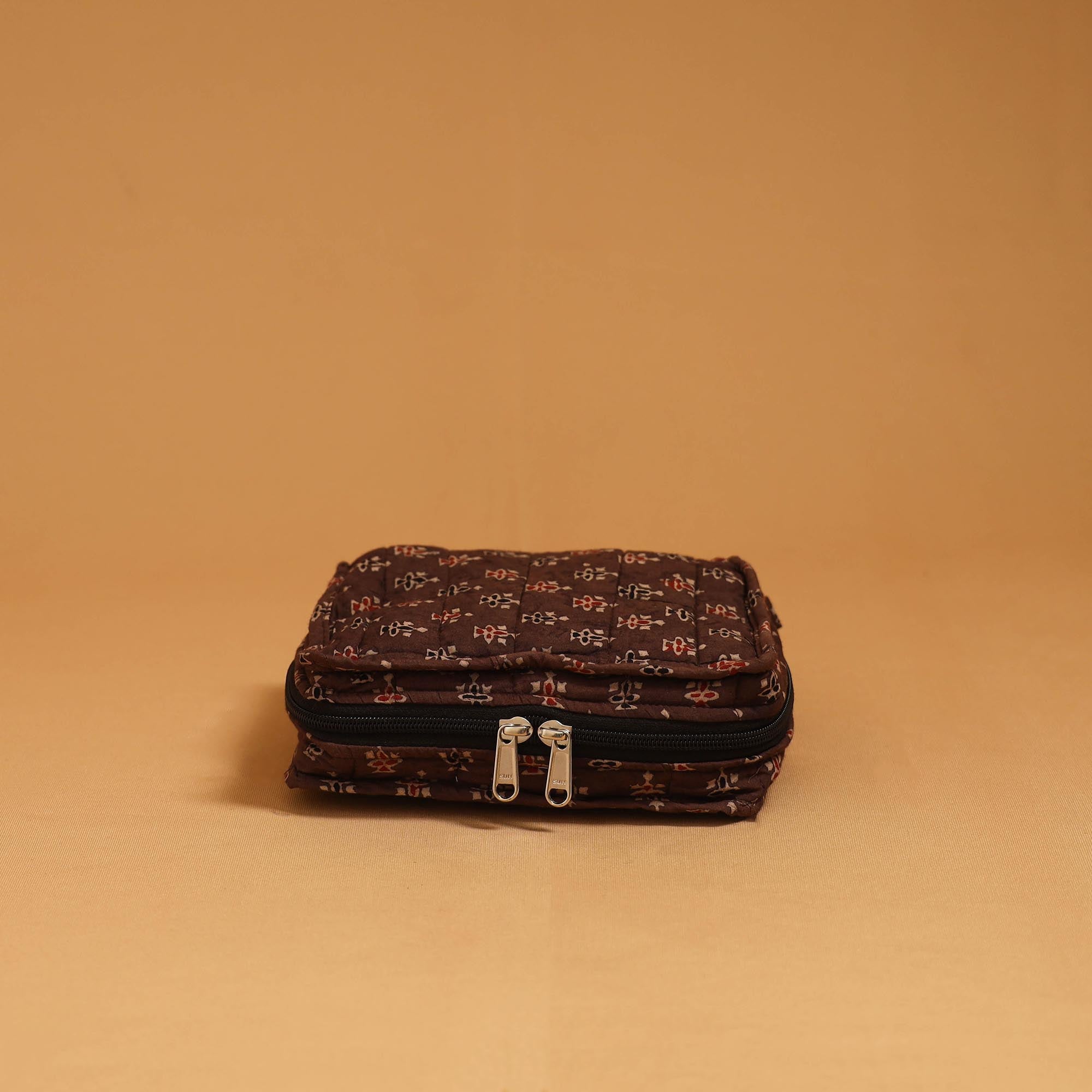 Quilted jewellery bag is made using Indian handmade textiles for keeping jewellery safe and organised, this quilted jewellery organiser is designed for both convenience and elegance. Thoughtfully crafted with multiple compartments and secure closure, it ensures that your accessories remain tangle-free and protected.