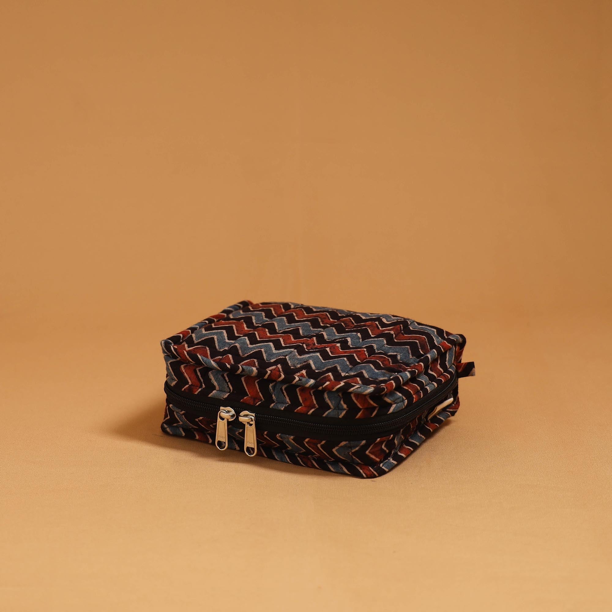 Quilted jewellery bag is made using Indian handmade textiles for keeping jewellery safe and organised, this quilted jewellery organiser is designed for both convenience and elegance. Thoughtfully crafted with multiple compartments and secure closure, it ensures that your accessories remain tangle-free and protected.