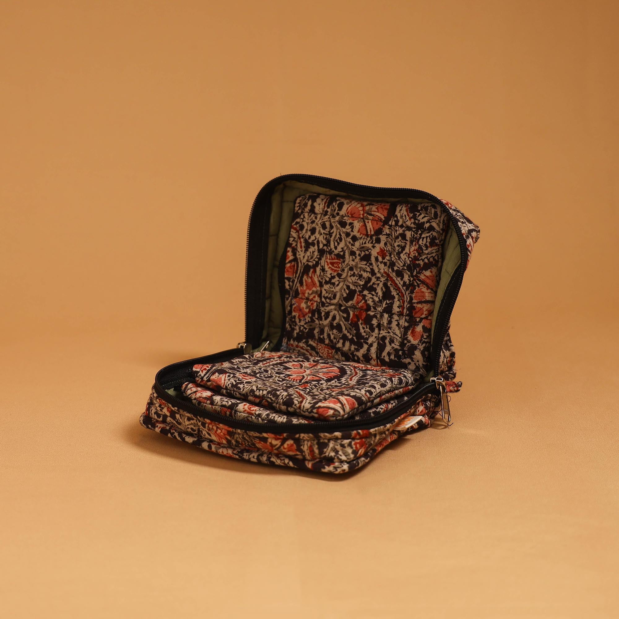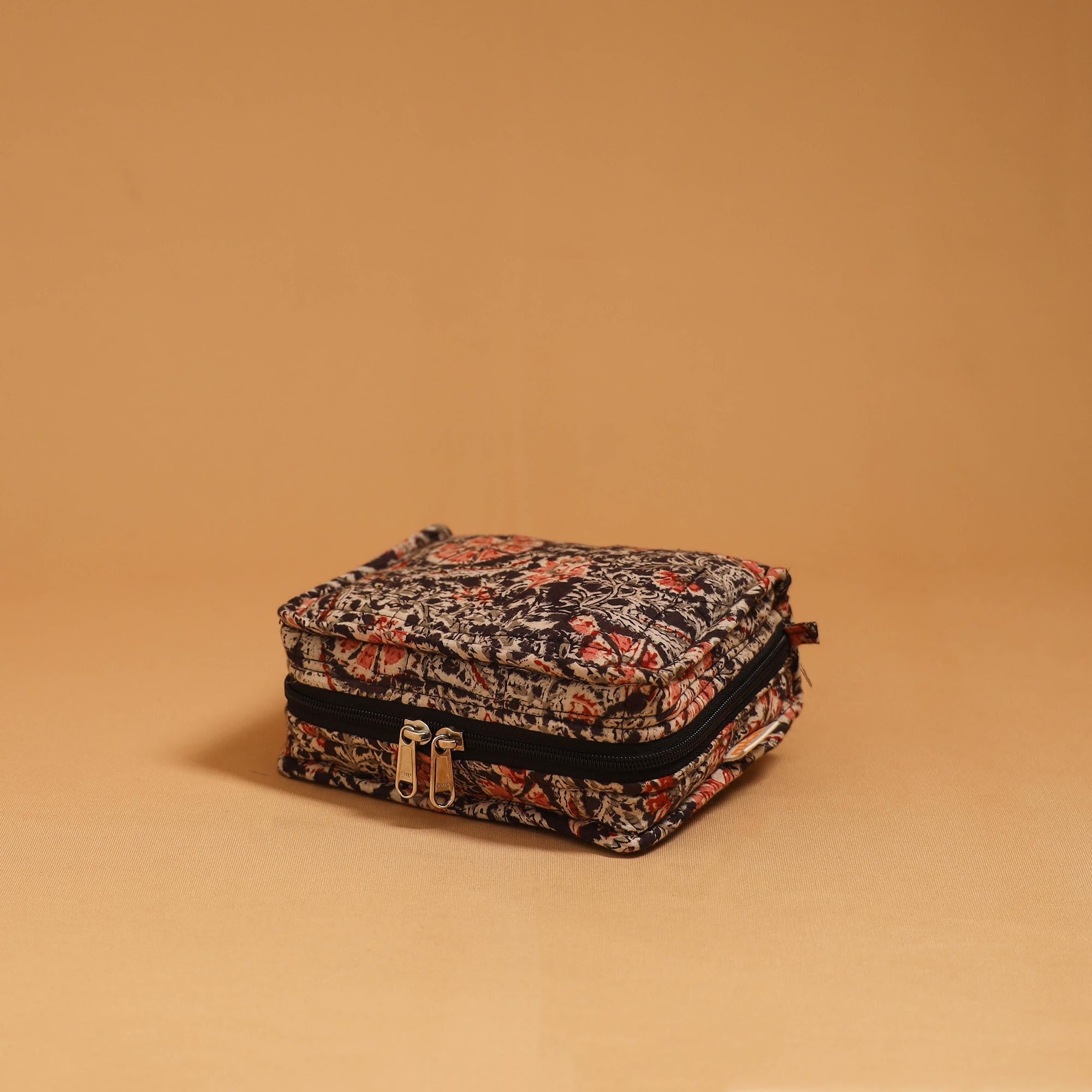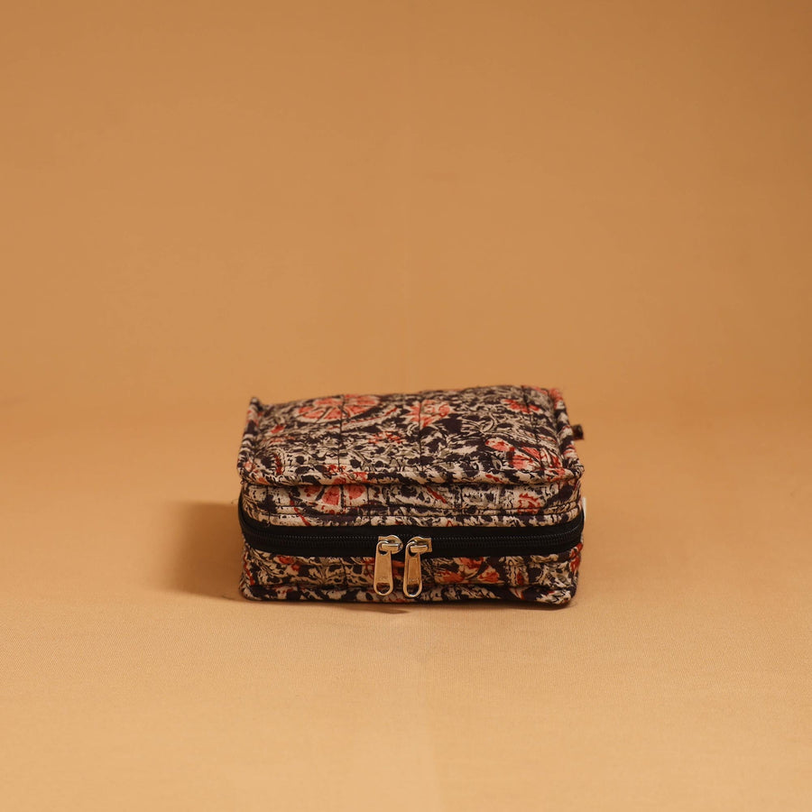 Quilted jewellery bag is made using Indian handmade textiles for keeping jewellery safe and organised, this quilted jewellery organiser is designed for both convenience and elegance. Thoughtfully crafted with multiple compartments and secure closure, it ensures that your accessories remain tangle-free and protected.