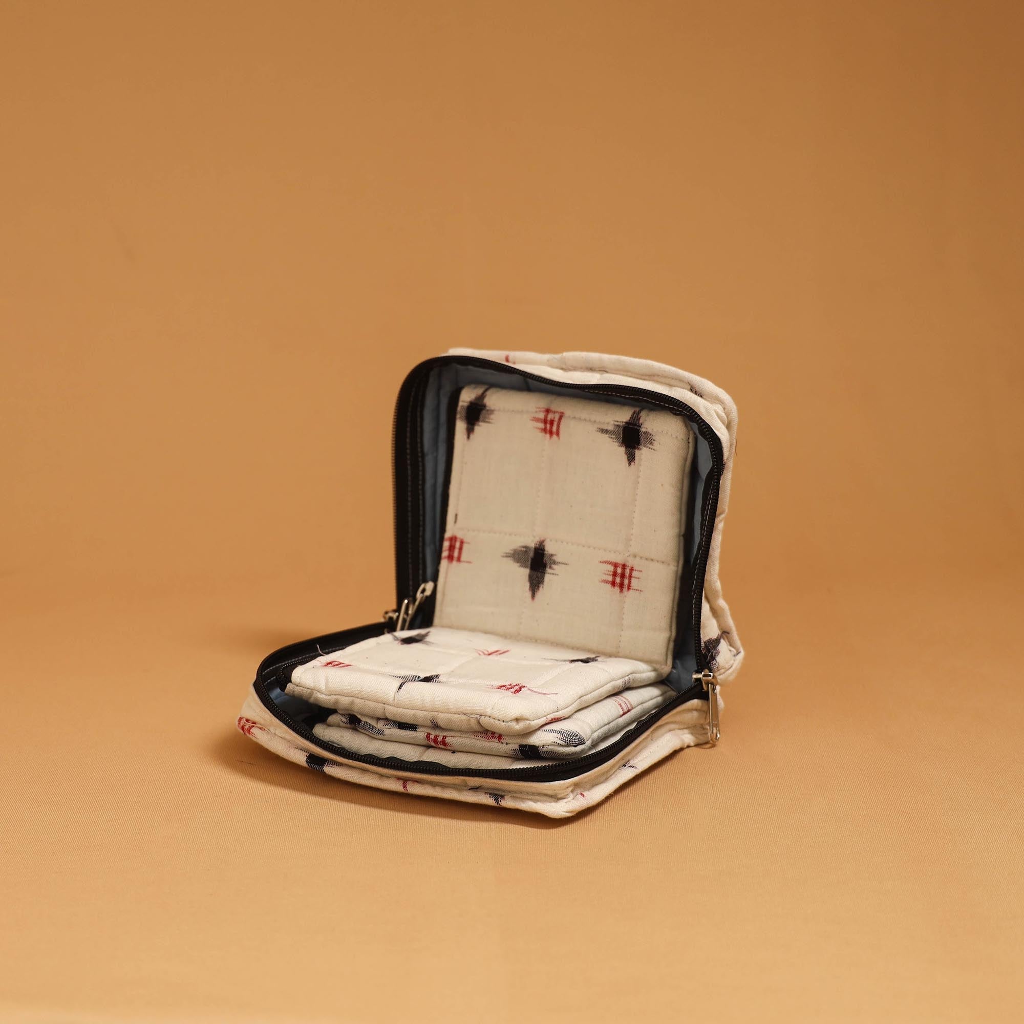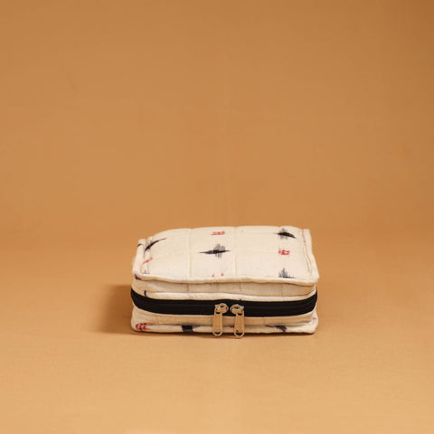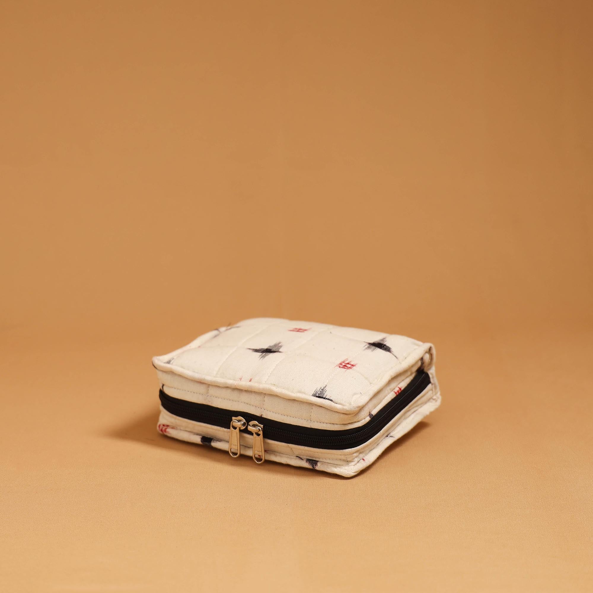 Quilted jewellery bag is made using Indian handmade textiles for keeping jewellery safe and organised, this quilted jewellery organiser is designed for both convenience and elegance. Thoughtfully crafted with multiple compartments and secure closure, it ensures that your accessories remain tangle-free and protected.