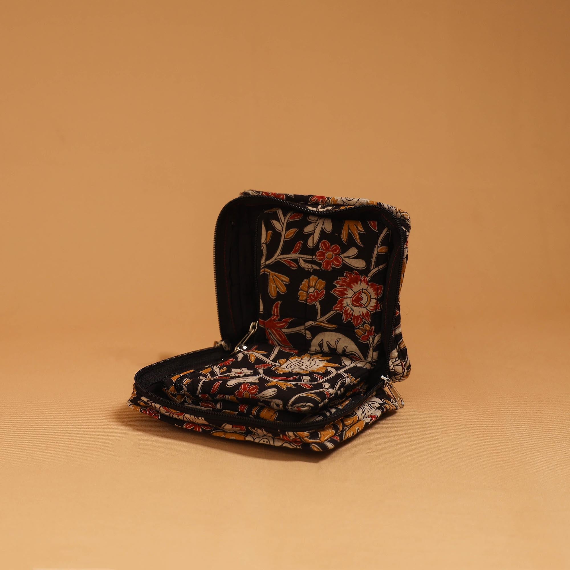 Quilted jewellery bag is made using Indian handmade textiles for keeping jewellery safe and organised, this quilted jewellery organiser is designed for both convenience and elegance. Thoughtfully crafted with multiple compartments and secure closure, it ensures that your accessories remain tangle-free and protected.