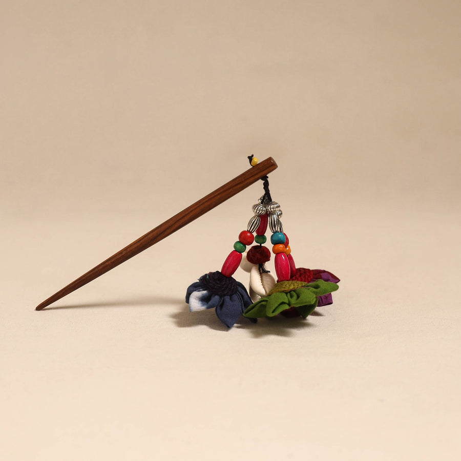 Handmade juda stick adds a graceful touch to your hairstyle. Made with a wooden base, it features intricate artistic details that may include beads, threadwork, german silver, fabric phool kali, shells or other decorative elements, reflecting the unique creativity of the maker.